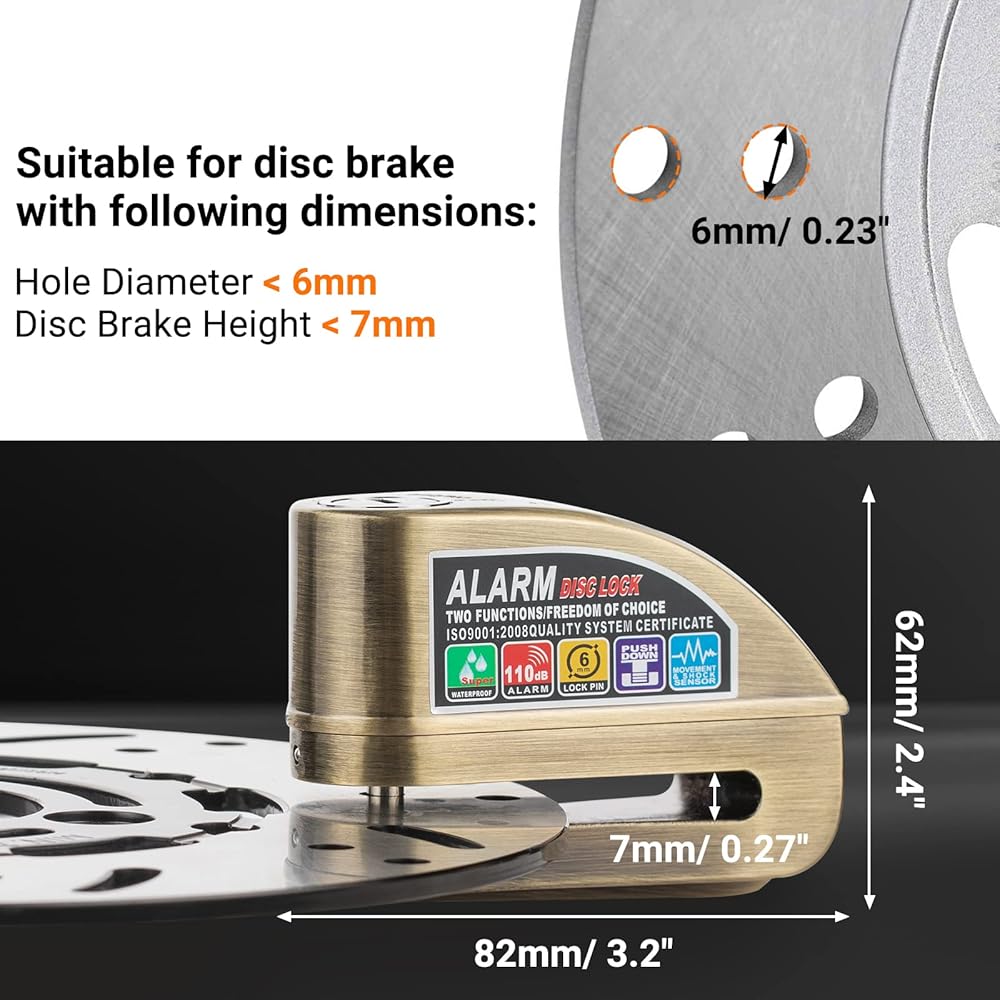• 【حماية معززة من السرقة】 قم بحماية مركباتك القيمة باستخدام قفل قرص الدراجة النارية Favoto، مما يوفر منعًا موثوقًا للسرقة في المنزل وعند ركنها بالخارج. يتميز بصوت إنذار قوي يبلغ 121 ديسيبل، وهو يردع اللصوص المحتملين بفعالية. من خلال عملية مريحة بضغطة واحدة، أصبح قفل دراجتك أمرًا سهلاً، مما يمنع أي فرص لاستغلال اللصوص.