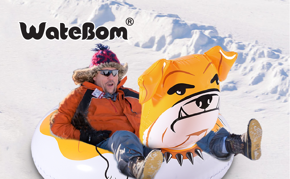 This large inflatable bulldog snow sled lets your family and friends enjoy winter fun. Let the bulldog tube accompany with you in the winter and give you an unforgettable happy time!