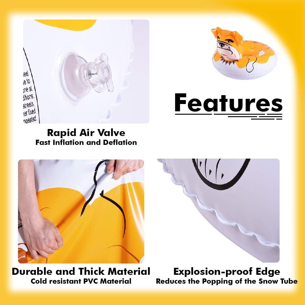 4. Superior Material: Thicken and Cold-resistant PVC Materials of the inflatable swim tube are safety tested. The snow sledding is made of non-toxic and environmentally friendly materials.