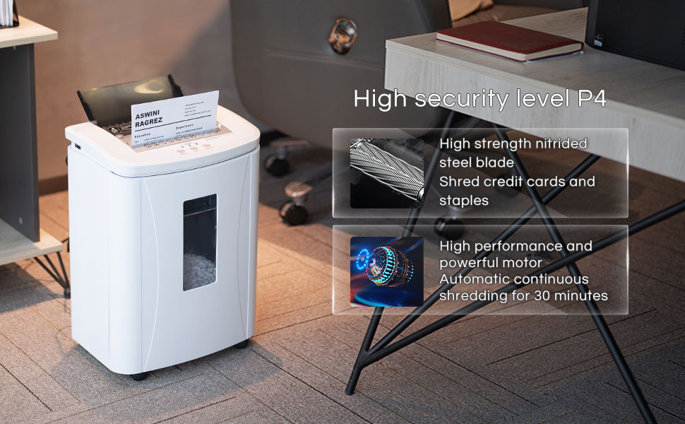 [مستوى أمان فائق P-4] يمكن لآلة تمزيق الورق الصغيرة من Kitnery تمزيق الورق إلى جزيئات صغيرة مقاس 8/64 بوصة × 25/64 بوصة (3 × 10 مم) لحماية خصوصيتك الشخصية بشكل أفضل، مستوى الأمان P-4، مثالي للتخلص من وثائق سرية للغاية. 60 ديسيبل منخفض الضوضاء عند تشغيل آلة التقطيع هذه مناسبة جدًا للاستخدام الشاق في المكاتب المنزلية.
