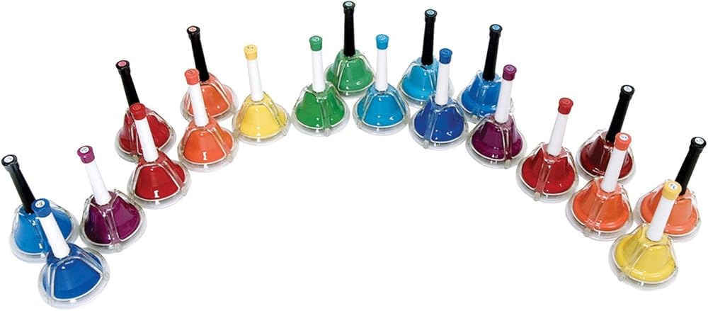 The combination of the RB107 and RB107C creates a full chromatic octave of the combination hand/deskbells then add the RB107EX and you have the necessary note before and after the octave to play a wide range of songs. Played by pushing the button or by traditional handbell technique. Best choice for young kids, special needs groups or seniors with limited mobility.
