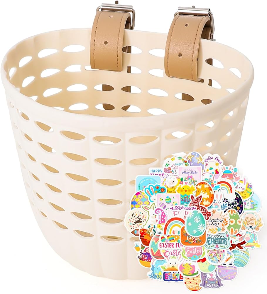 【Cute Kids Bike basket】: Our kids bike basket color has pink, purple, white, beige, brown and other choices, and also with cute cartoon stickers, you can add a practical and beautiful accessory to your child's bike. It may be a good buying experience to let kids pick their favorite color baskets to match their bikes. The basket is widely used: universal boys and girls walking cart scooter balance bike and many other children's car models.