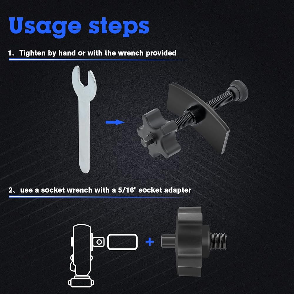 【سهلة الاستخدام】تتمتع بمقبض مريح أكبر ومفك خيط دقيق فريد من أداة توزيع وسادة الفرامل القرصية العامة، يمكنك الضغط يدويًا أو استخدام مفتاح الربط المجاني لشد مكبس الفرجار، وتقليل ضغط وتعب اليدين، وجعل أنت تعمل بشكل أسرع وأسهل