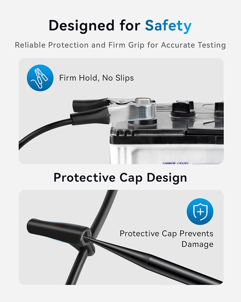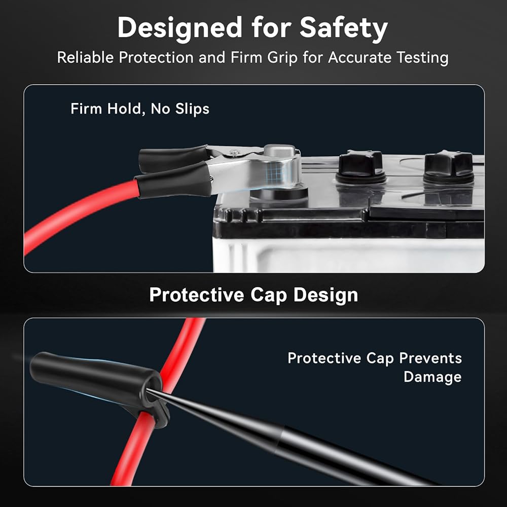 نطاق اختبار أكبر وأكثر ملاءمة للاستخدام: يمكن تمديد سلك الزنبرك بحرية لاختبار الدوائر في نطاق أوسع، سلك الزنبرك الطويل بما فيه الكفاية (96 بوصة) أكثر ملاءمة ومتانة من الكابلات العادية. مجهزة بمشابك تمساح كبيرة الحجم، فمن السهل تشغيلها بيد واحدة وتحسين كفاءة العمل.