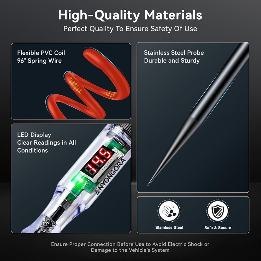 جودة مثالية لضمان سلامة الاستخدام: المقبض مصنوع من البلاستيك عالي الجودة لعزل ومتانة أفضل. المسبار الحاد مصنوع من الفولاذ المقاوم للصدأ عالي الجودة، والذي يمكنه اختراق العزل بسهولة من أجل راحتك.