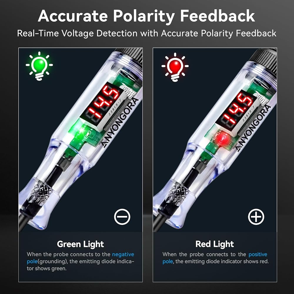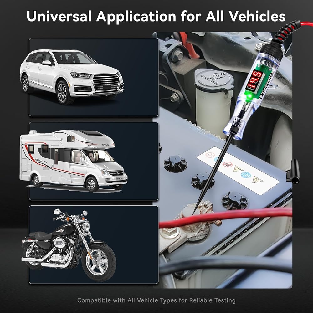مساعد موثوق به: يمكن لضوء اختبار الدائرة التحقق بسرعة من جهد دوائر السيارة. يمكن استخدامه للتحقق من اتصال الصمامات والمصابيح الأمامية والمصابيح الخلفية ودوائر إشارة الانعطاف. كما أنه مناسب لفحص بطاريات السيارة ودوائر نظام الإشعال لمعرفة الدوائر القصيرة وأخطاء الأسلاك المكسورة.