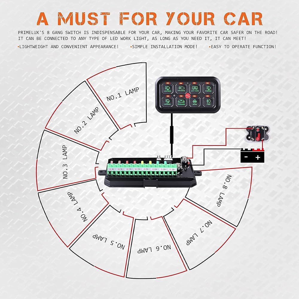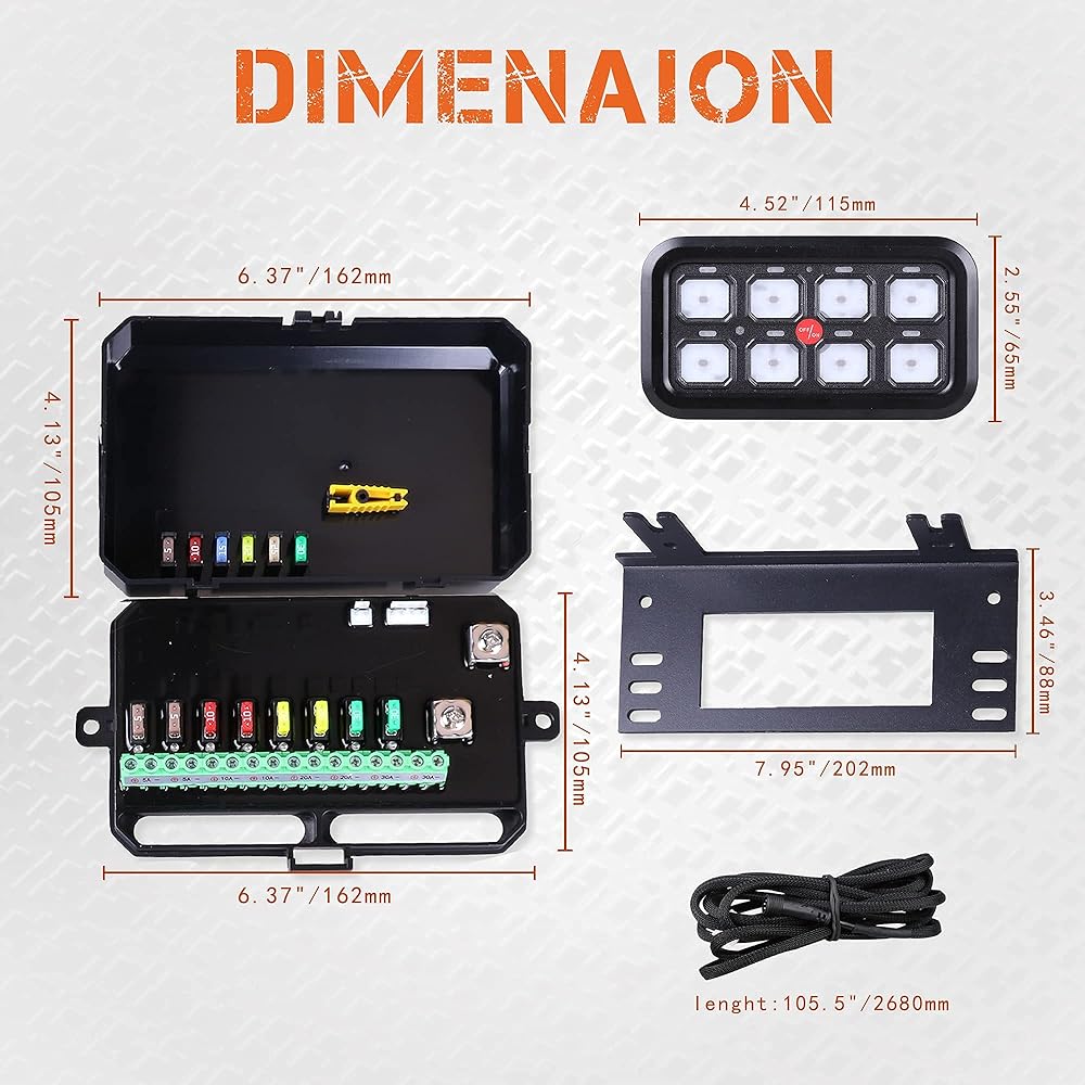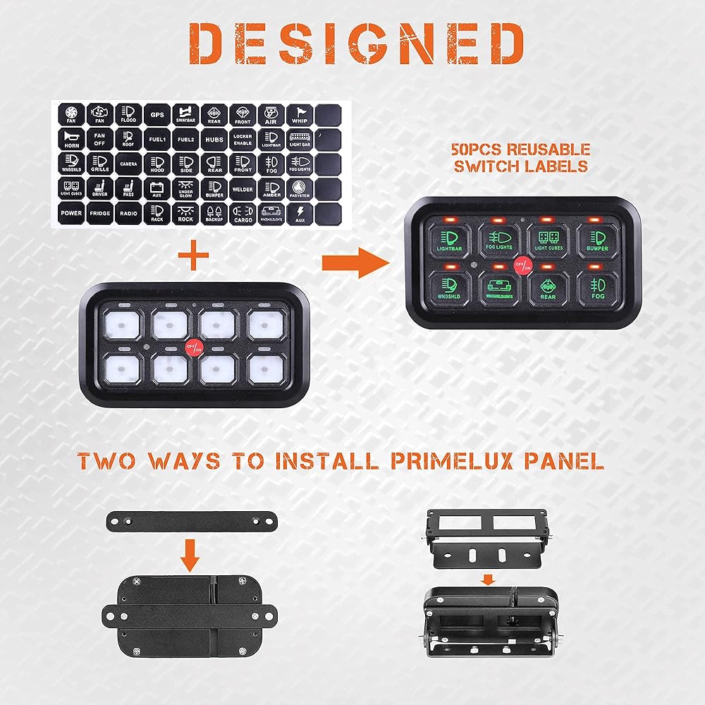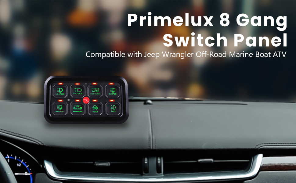 تطبيق واسع - إذا كنت ترغب في الحصول على أفضل لوحة مفاتيح ذات 8 مجموعات، يمكنك اختيار Primelux. نطاق التطبيقات لدينا واسع ولا يشغل مساحة، ويوفر مساحة أكبر ويمكن تركيبه في أي مكان تراه مناسبًا، مثل لوحة القيادة، ولوحة القيادة، ووحدة التحكم المركزية، وحامل النظارات الشمسية العلوية، ومناسب لأنواع مختلفة من الشاحنات والسيارات وutv ، مركبة، بحرية، رياضات القوة، قارب، مركبة للطرق الوعرة.