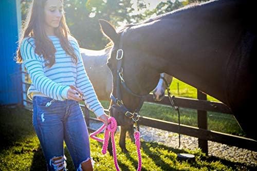 🐴 مريحة للحصان والراكب: تتميز سلاسل الحصان المصنوعة من الحبال القطنية الطبيعية بأنها ناعمة جدًا على يديك وتوفر قبضة قوية. سواء كنت على الطريق أو في الحظيرة أو التدريب، يمكنك قيادة حصانك بثقة مع العلم أن لديك أقوى سلسلة متاحة. إن أرسننا مصنوعة من الحبال القطنية الملتوية الأكثر مبيعًا لدينا والتي تعتبر آمنة لجميع الحيوانات ويشيع استخدامها في ألعاب الكلاب والرصاص والمقاود وألعاب الطيور، لذلك يمكنك التأكد من أنها آمنة لحصانك.