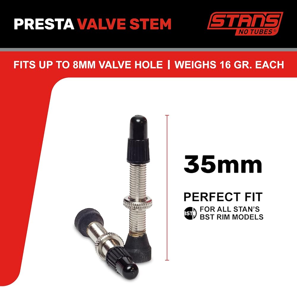 Stans-No Tubes 35mm Presta Universal Valve Stem (زوج منفوش للجبال)