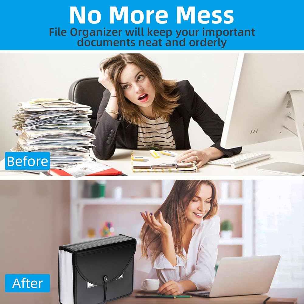 ملصقات ملونة للتصنيف: مع الملصقات الملونة، يساعدك منظم الملفات المحمول على تصنيف مستنداتك بسهولة واسترجاعها في لحظة. سواء كنت تدير مشاريع عمل، أو تمويلًا شخصيًا، أو مستندات مهمة، فإن نظام حفظ الملفات لدينا يبسط سير عملك. لا مزيد من إضاعة الوقت الثمين في البحث بين أكوام الأوراق - يضمن منظم الملفات الورقية إمكانية التعرف على كل ملف بسهولة