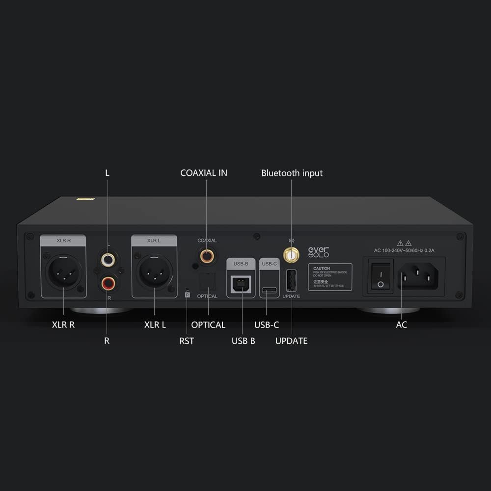 إدخال الصوت: تدعم جميع واجهات الإدخال نقل DSD وفك التشفير الكامل MQA، ويدعم USB-B وUSB-C DSD512، وPCM 768 كيلو هرتز 32 بت وMQA. الدعم البصري والمحوري PCM 192 كيلو هرتز 24 بت، DSD64 Dop وMQA؛ تدعم وحدة Qualcomm QCC5125 Bluetooth 5.0 بروتوكول SBC/AAC/.