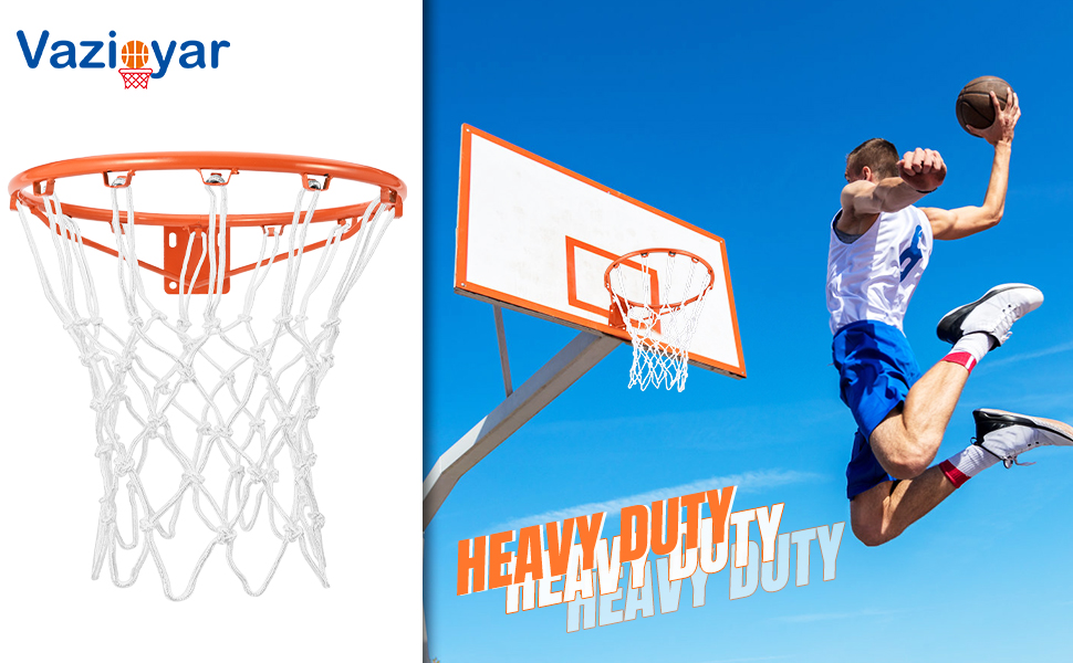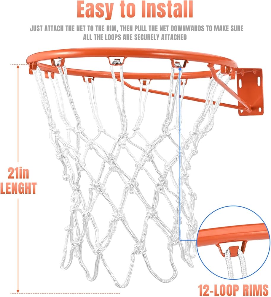 • 【حجم قياسي】تتميز شبكة كرة السلة شديدة التحمل بـ 12 حلقة ويبلغ طولها الإجمالي 21 بوصة لتناسب جميع إطارات وألواح كرة السلة الداخلية والخارجية ذات الحجم القياسي.
