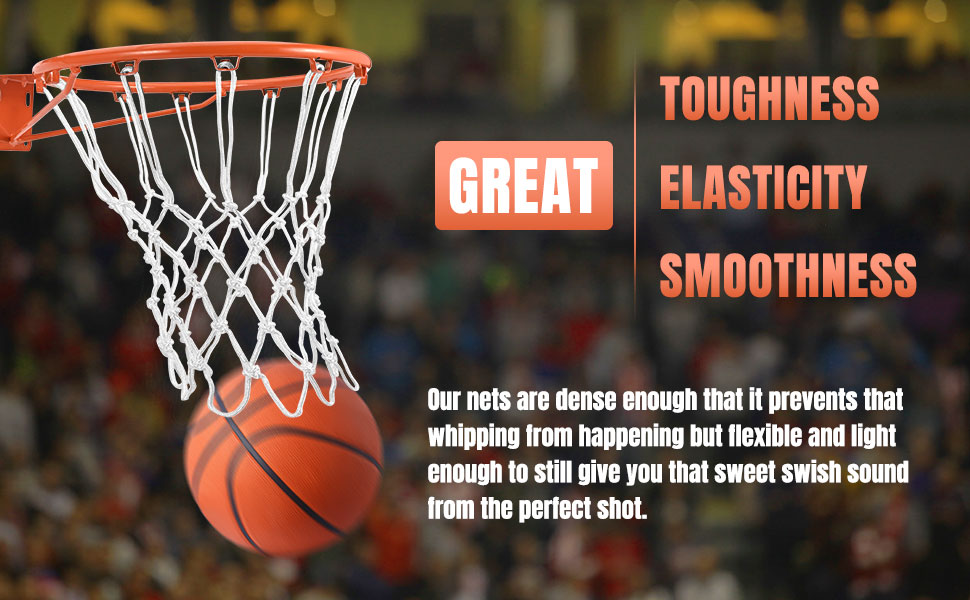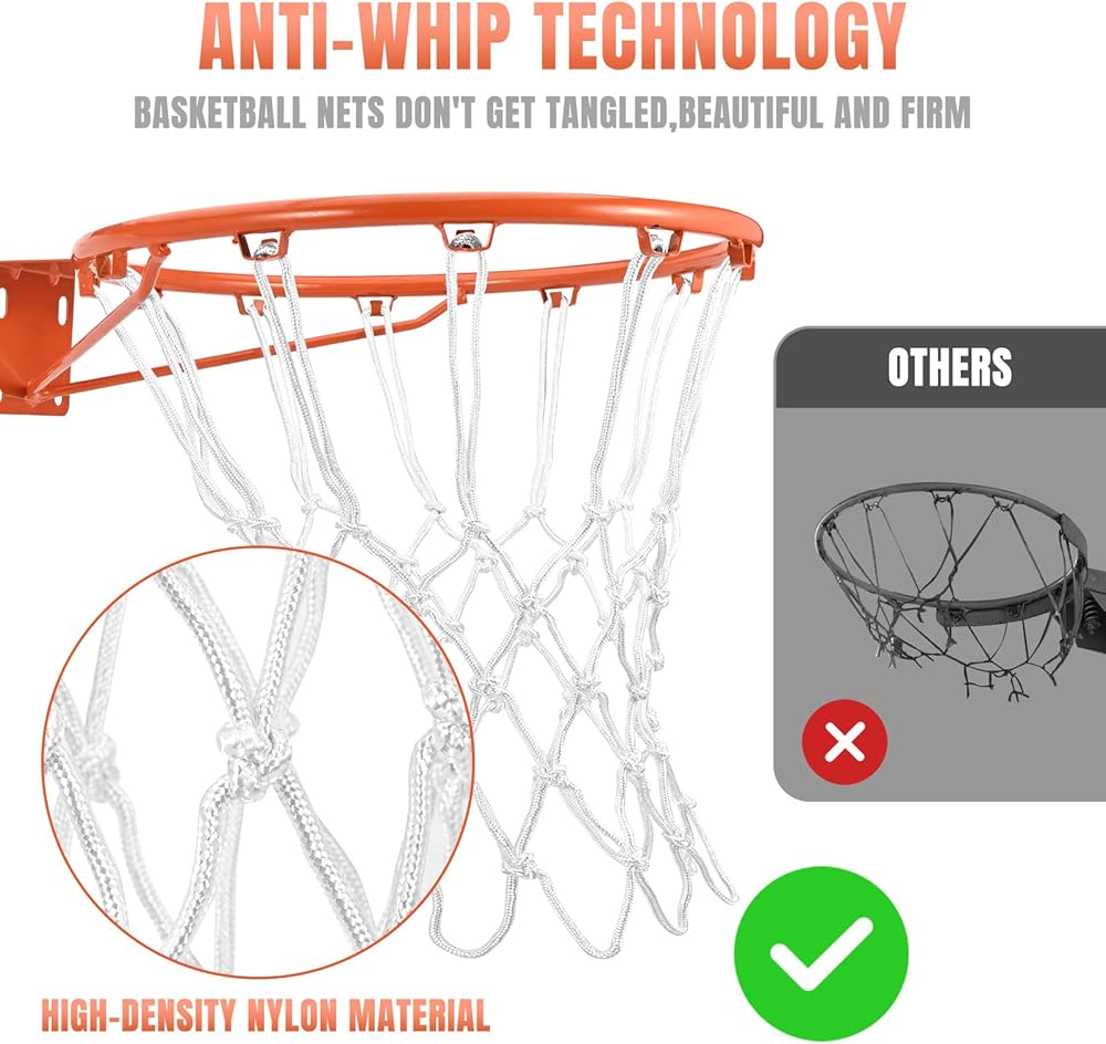 • 【مضادة للسوط】تتميز شبكات كرة السلة هذه بأنها سميكة ورقيقة، وتساعد تقنية مكافحة السوط على منع شبكتنا من التشابك مع الحافة عندما تدخل الكرة في الطوق، وفي الوقت نفسه تحافظ على مرونتها لتوفير هذا الصوت الجميل لتلك اللقطة المثالية. .