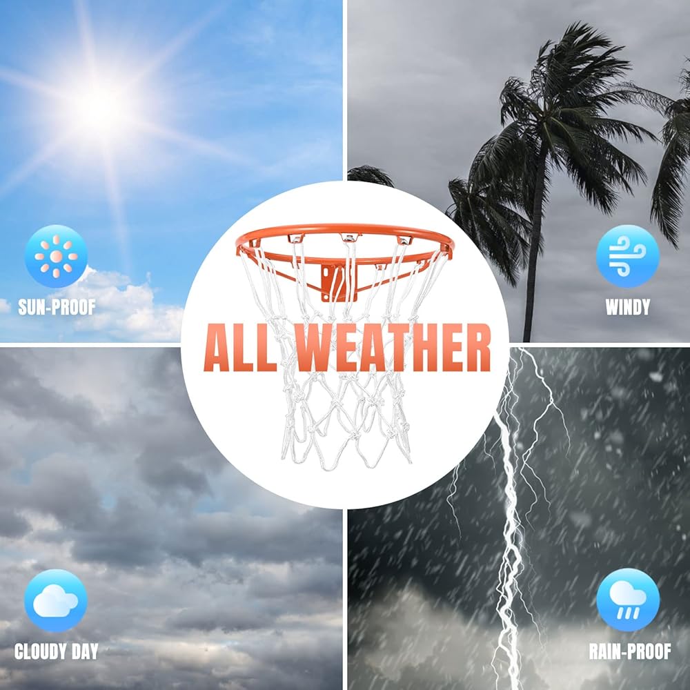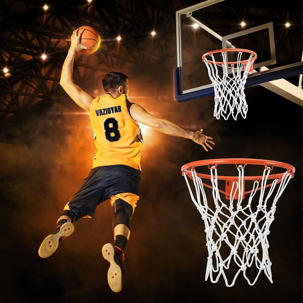 • 【عالية الجودة】شبكة كرة السلة الخاصة بنا مناسبة لجميع الأحوال الجوية مصنوعة من ألياف البوليستر النايلون السميكة، وتتحمل أي نوع من الظروف الجوية وتتحمل الغمر والتموج والسحب، ولا تتقدم في السن أو الكسر بسهولة، متينة وتدوم طويلاً، ويمكن استخدامها في الداخل والخارج. في الهواء الطلق.