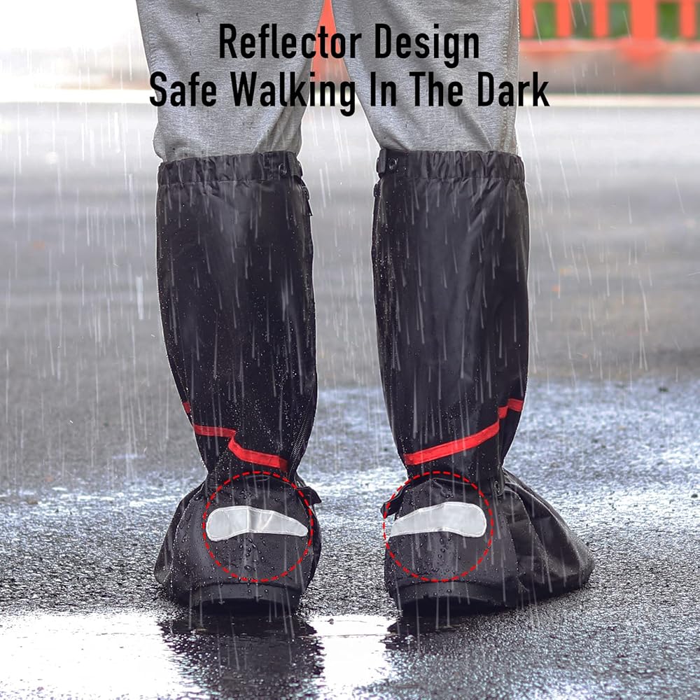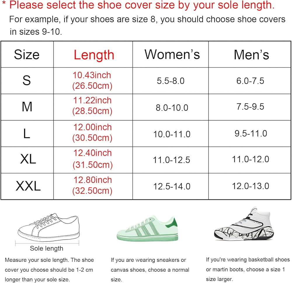 حماية كاملة: أغطية أحذية مقاومة للماء بارتفاع حذاء 16.5 سم، فهي ليست خائفة من المطر الغزير والشريط المطاطي في الأعلى يمنع غطاء الحذاء من الانزلاق أثناء المشي.