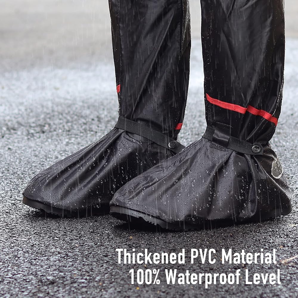 مقاوم للماء بنسبة 100%: غطاء حذاء المطر هذا مصنوع من مادة PVC الفاخرة من الداخل والخارج، مع مرونة عالية ومتينة، ومقاوم للماء والغبار بنسبة 100%، ويحافظ على حذائك جافًا في جميع الأوقات.