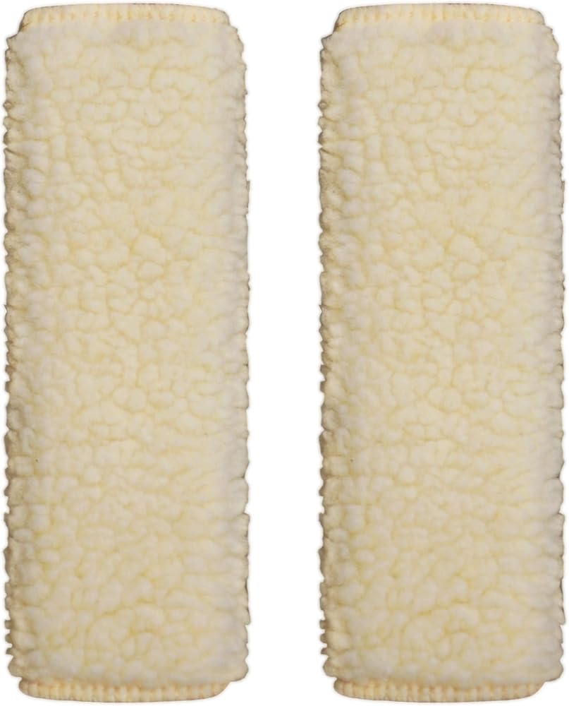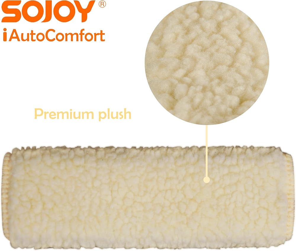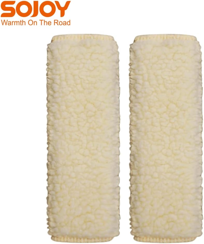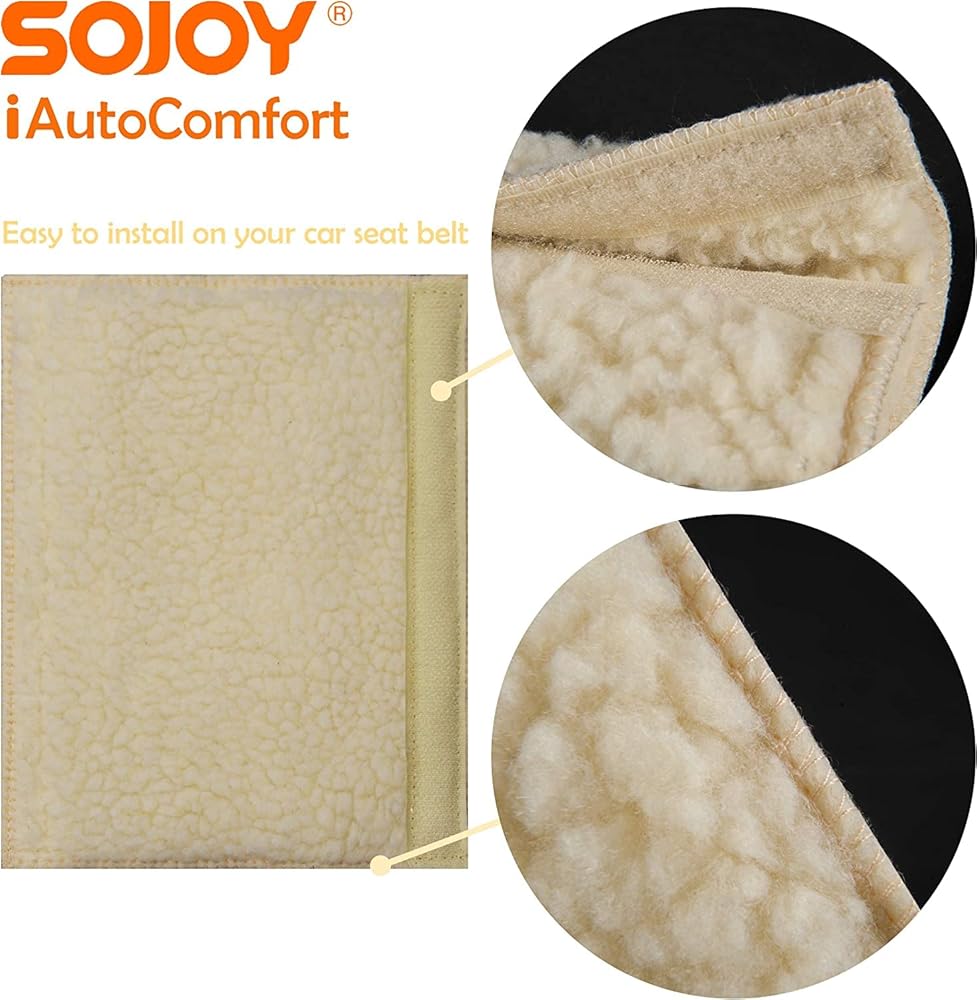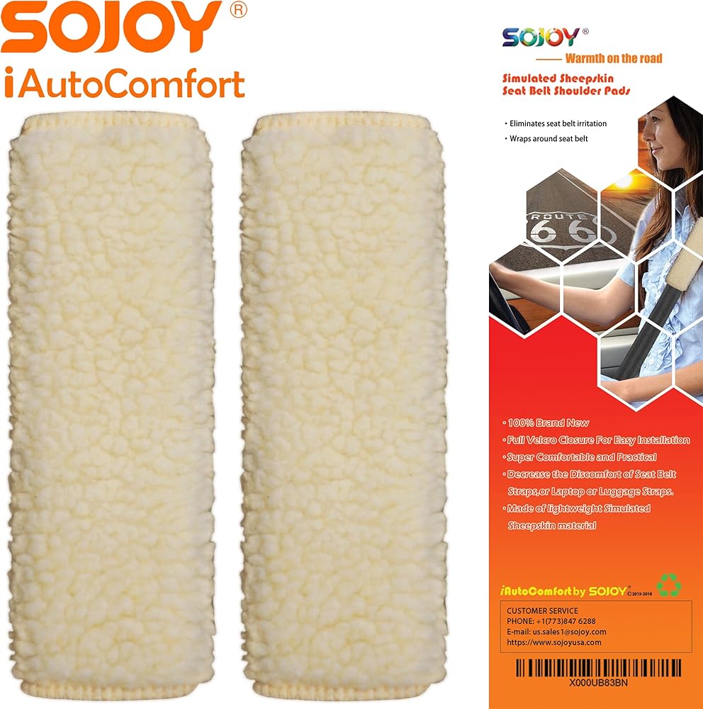 Sojoy seat belt shoulder pads are made of lightweight simulated sheepskin material.