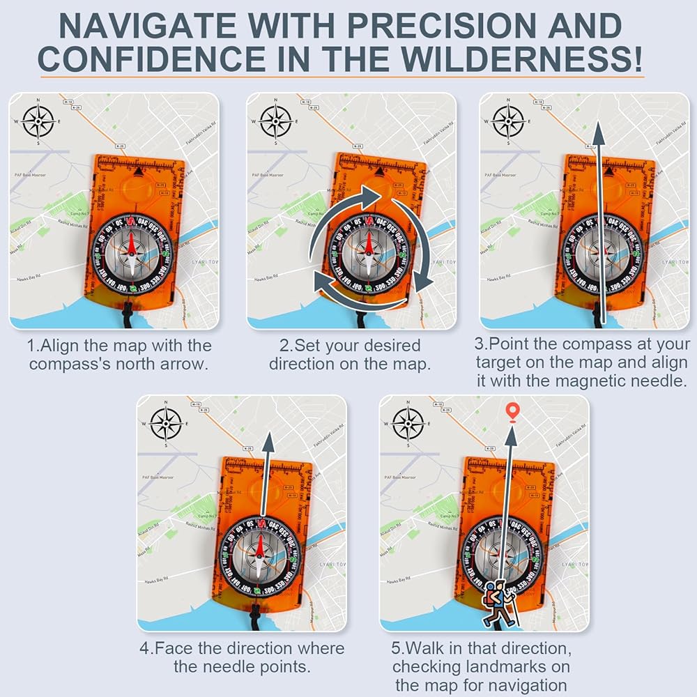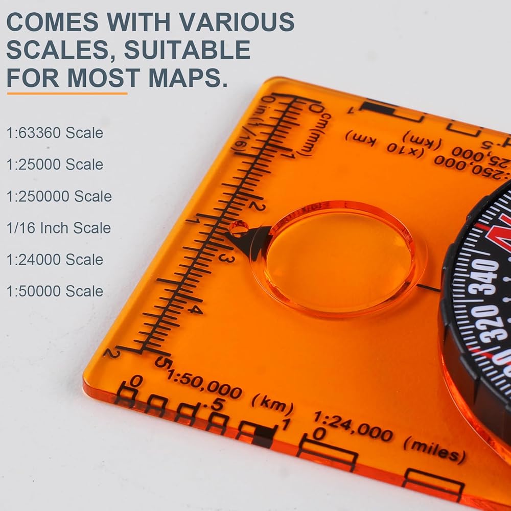 • [تطبيقات متعددة الاستخدامات وواسعة النطاق] تم تصميم البوصلة الخاصة بنا لتوفير تجربة تنقل شاملة، وتتميز بعدسة مكبرة ومسطرة وخط اتجاهي وخيارات متعددة المقاييس. يمكن استخدام هذه الأداة متعددة الاستخدامات مع أي خريطة تقريبًا، مما يجعلها مناسبة لمجموعة واسعة من الأنشطة، بما في ذلك التعليم في الهواء الطلق للطلاب وتسلق الجبال والمشي لمسافات طويلة والاستكشاف في الهواء الطلق.