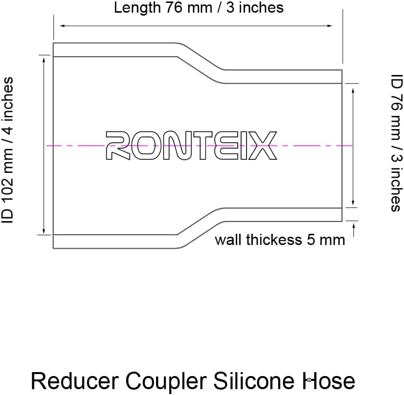 - القطر الداخلي: 4 بوصة (102 مم) إلى 3.5 بوصة (89 مم). الطول: 3.0 بوصة (76 ملم). السُمك: 5 مم؛