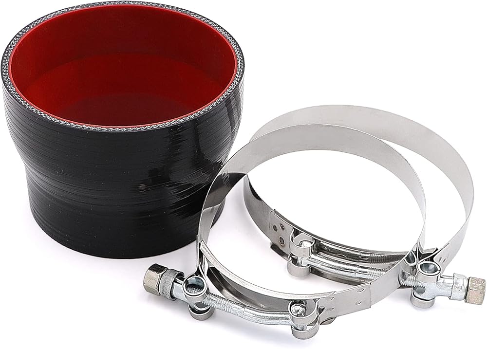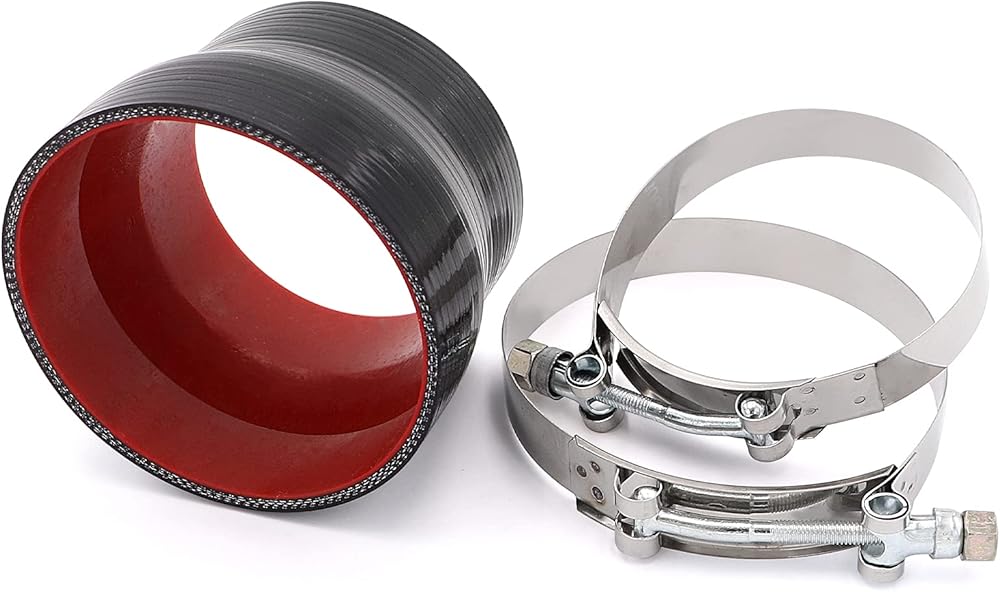 Features: Coupler Size: 3-1/2 to 4 Coupler Length: 3 Temperature: 428 Degrees F (220 C). 4-ply Polyester Reinforced. Includes 2 T-bolt clamps(100mm,115mm) Package include: 3-1/2 to 4 Silicone Coupler 4 Layers of Polyester Reinforcement Suitable Pipe Intake Turbo Intercooler with 2x T-Bolt Clamps(100mm,115mm) Silicone couplers feature 4 layers of polyester reinforcement and are suitable for applications with boost pressures up to 2mpa. They also feature a temperature rating of 428¡ãF for direct to turbocharger installations. Our product meet rigorous standards and have been field tested time and time again.