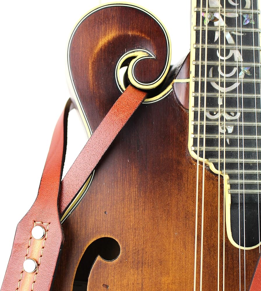 Walker And Williams M-11 Premium Retro Chestnut & Tan 100% جلد محبب مندولين أو ماندولا أو بوزوكي أو حزام Uke للمندولين من النوع A وF