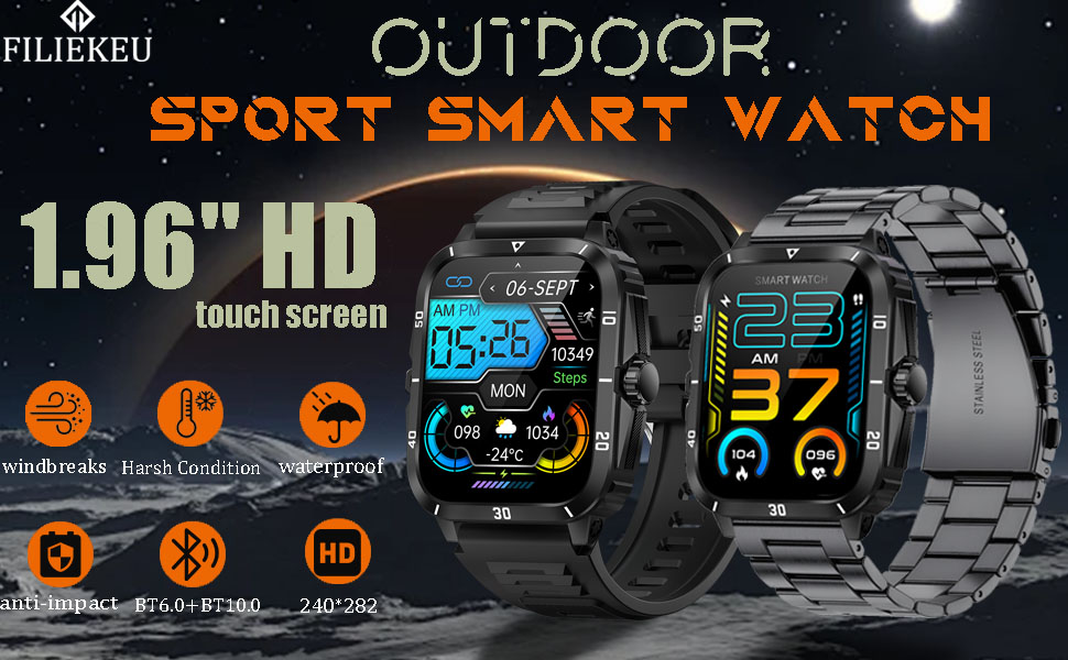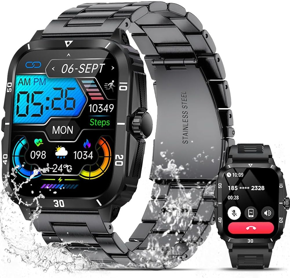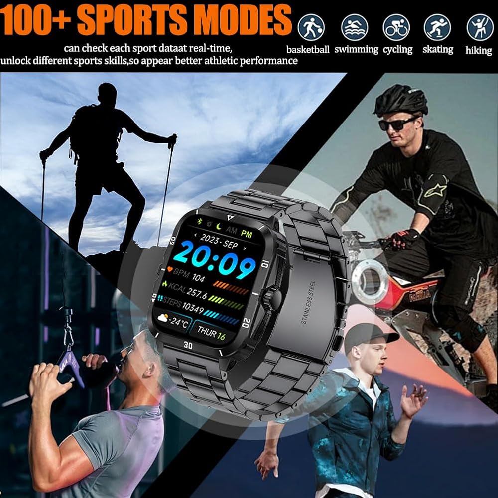 ⌚شاشة لمس عالية الوضوح وقرص مخصص: تتميز هذه الساعة الذكية العسكرية بشاشة عرض مقاس 1.96 بوصة بدقة تصل إلى 240*282، وتشغيل سلس، وتجربة بصرية أكثر وضوحًا وإشراقًا ودقة. يمكنك أيضًا تخصيص القرص، وتحميل صورك المفضلة كقرص، والتعبير عن شخصيتك وأناقتك، أو مشاركة ذكرياتك الثمينة مع حبيبك.