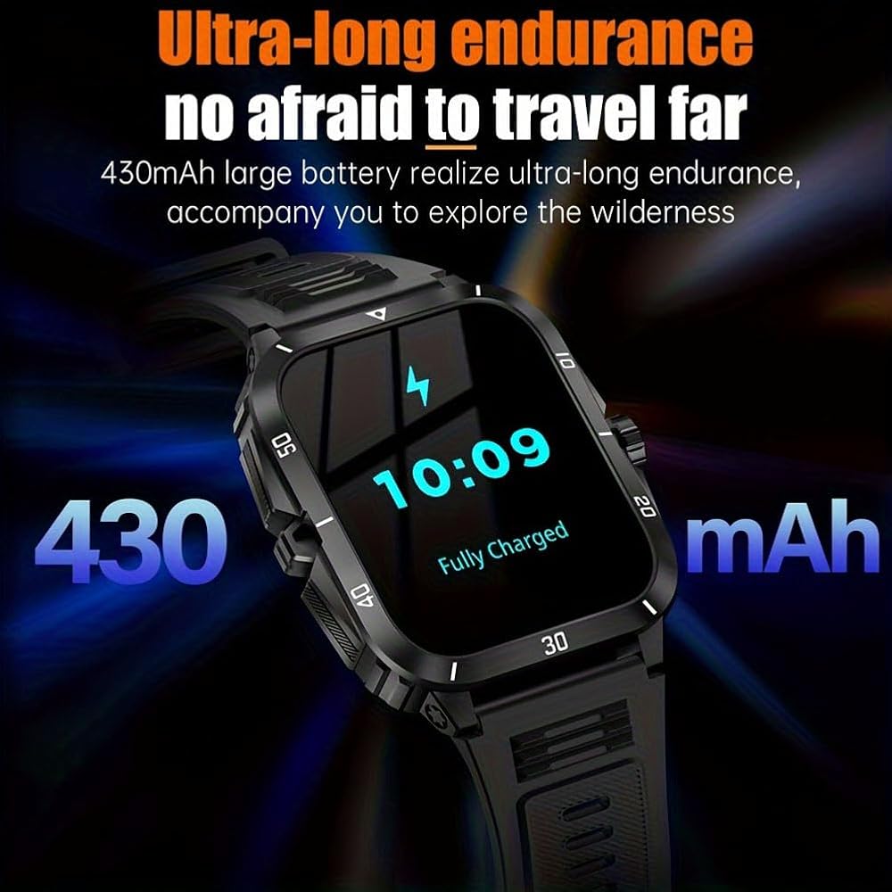 ⌚ بطارية ذات سعة كبيرة مقاومة للماء بعمق 3ATM: تتمتع هذه الساعة الذكية العسكرية بتصنيف مقاوم للماء 3ATM وقد خضعت لاختبارات صارمة ضد الماء لتلبية احتياجات الاستخدام اليومية. بطارية كبيرة بسعة 430 مللي أمبير في الساعة توفر وقت استعداد طويل للغاية يصل إلى 30 يومًا. خضع الهيكل المصنوع من الألومنيوم لهذه الساعة لاختبارات عسكرية مختلفة للضغط المنخفض والغبار لضمان التشغيل الموثوق به في أقسى البيئات. إنه الرفيق المثالي لأنشطتك ومغامراتك الخارجية قصيرة المدى