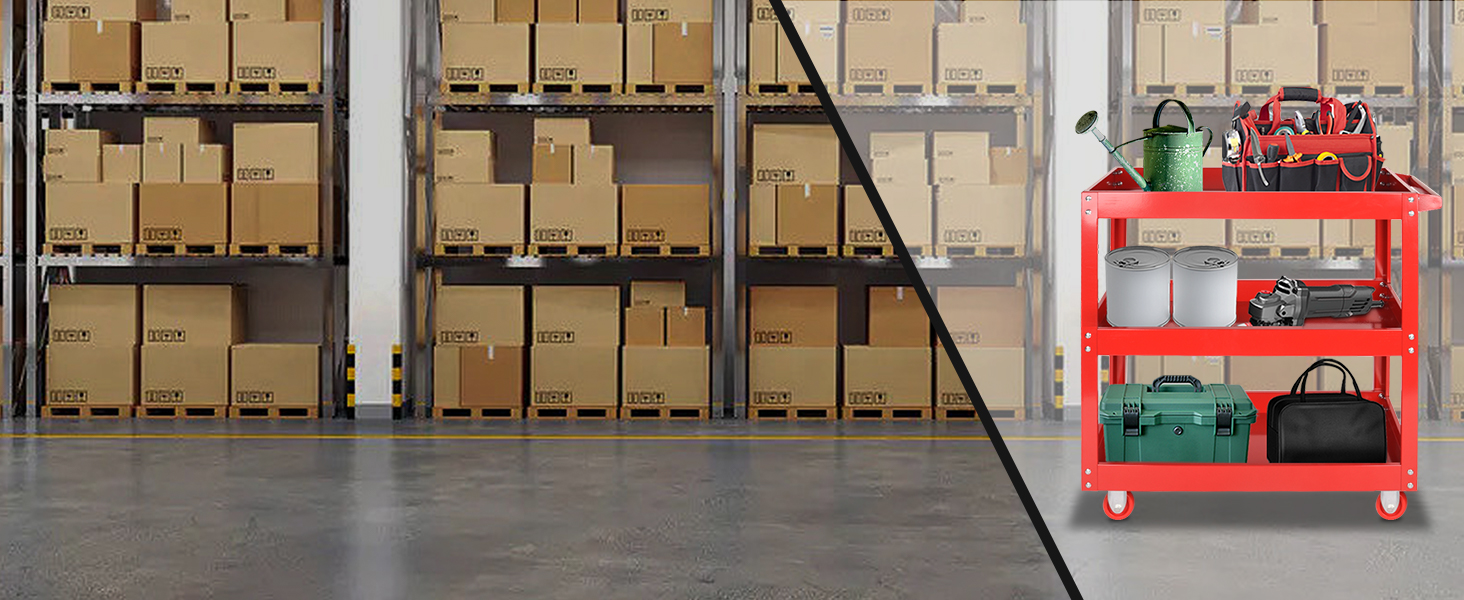 【تصميم متعدد الوظائف】: عربة الأدوات المكونة من 3 طبقات مجهزة بمقبض إنساني، وهو سهل الاستخدام. مثالية للمستودعات والجراجات والمكاتب والمطاعم والحدائق وورش العمل.