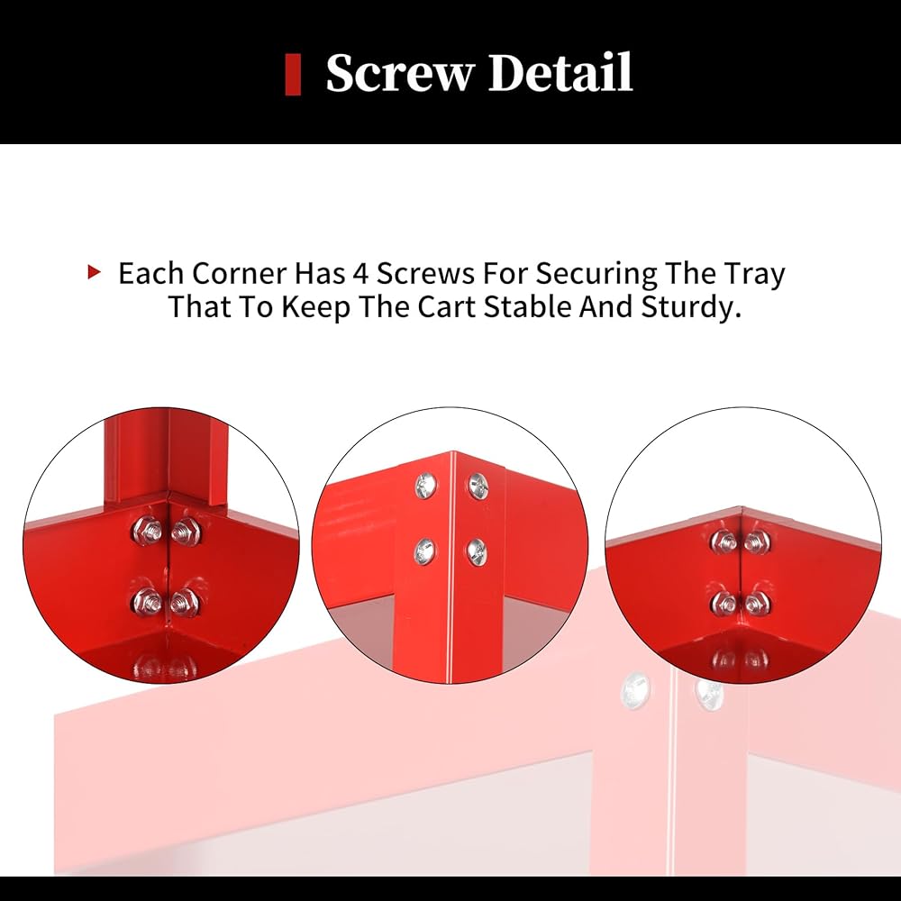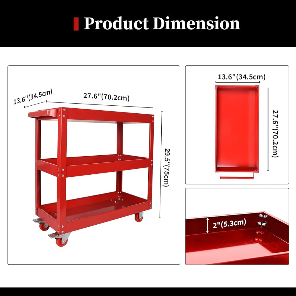 【هيكل متين】: مقاس عربة الأدوات المكونة من 3 طبقات 61.58 سم × 35.56 سم × 76.2 سم وهي مناسبة لجميع الأعمار. يضمن الفولاذ عالي التحمل وطلاء الطلاء الفاخر أعلى مستويات الجودة والمتانة.