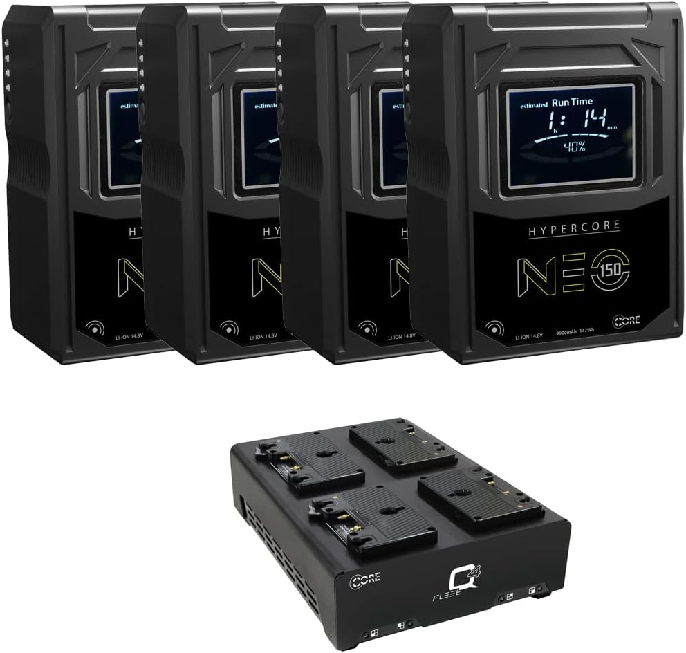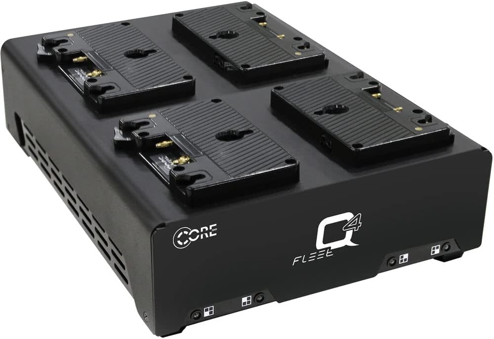 It comes with a Core SWX Fleet Q Gold Mount Charger is capable of charging four batteries simultaneously by focusing on each individually. Four 98Wh batteries can be charged in approximately 2.5 hours. Red and green LEDs indicate charging/complete status. Supporting 90-240 VAC input voltage, Fleet Q is worldwide compatible if you incorporate the appropriate plug adapter, sold separately.