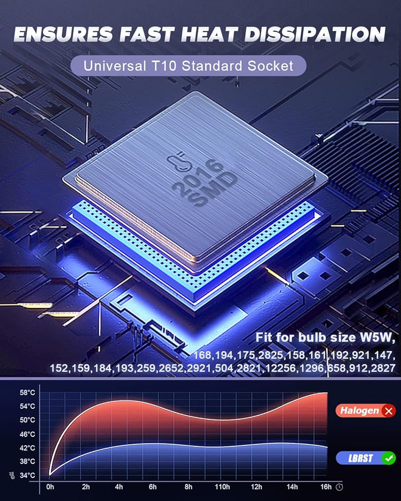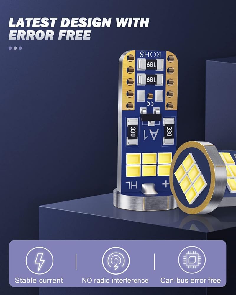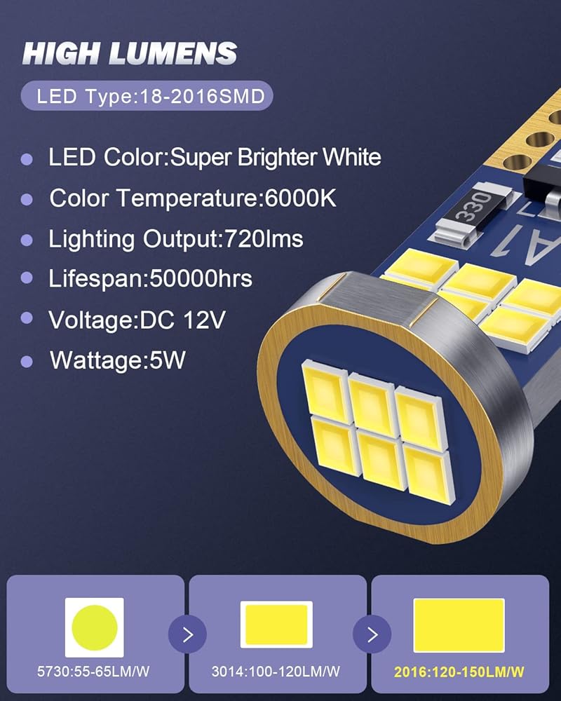 أحدث تصميم مع Canbus خالي من الأخطاء: لمبة T10 LED لا يوجد خطأ بعد تركيب 99% من المركبات. موفرة للطاقة وتدوم لفترة طويلة لمدة 50,000 ساعة