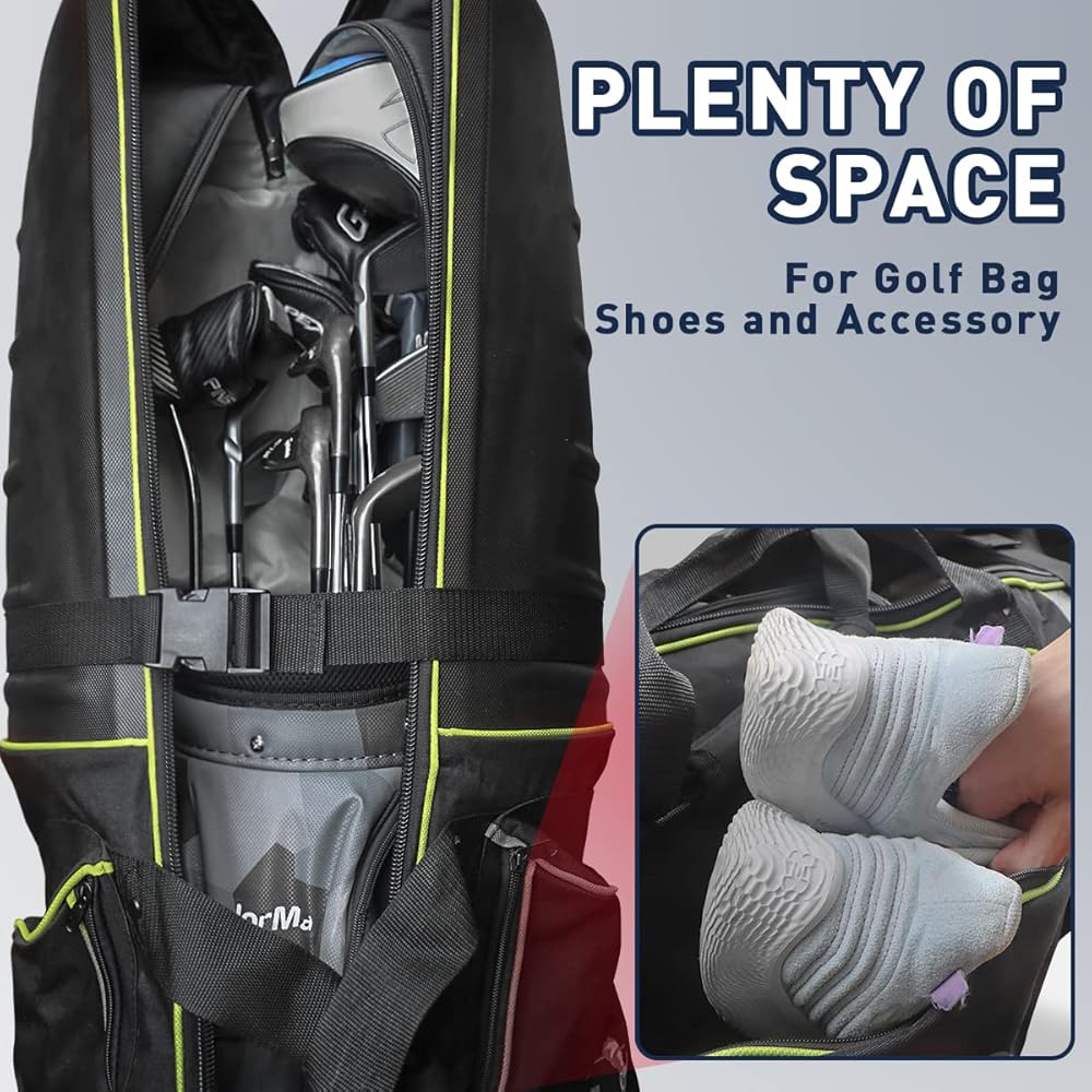 【تخزين أكبر】جيبان جانبيان إضافيان لمساحة تخزين أكبر ويساعدانك على تخزين معظم معدات الجولف عند السفر مثل الملابس والقفازات والأحذية والإكسسوارات وما إلى ذلك.