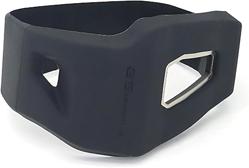 - This protector protects the standard rear silencer of your GS in case of falling over or slipping. It shines with its harmonious design, which takes up the look of the end cap and the beading of the silencer and perfectly continues. Two polygonal openings complete the design integration. - The protector is extremely easy to install. It is made of heat-resistant silicone elastomer, which is additionally stabilized with a stainless steel insert. This allows it to be easily "wound" from the rear via the rear silencer cap and precisely positioned without tools – like a banderole.