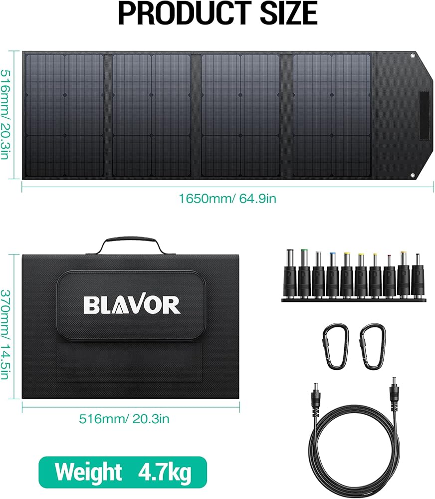 مواد فاخرة ومسند قابل للتعديل: تستخدم اللوحة الشمسية BLAVOR خمس طبقات من المواد عالية الجودة. يتم تغطية اللوحات الأربع بمادة ETFE، والتي لا تساعد فقط في التحويل ولكن أيضًا تمنع الخدش. يمكن للمسند القابل للتعديل الحفاظ على زاوية أفضل لتحويل شحن الطاقة الشمسية.