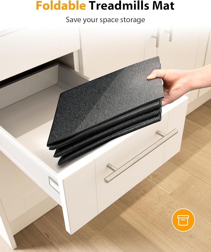 • Foldable Design: The treadmill mat features a convenient foldable design, allowing you to easily fold and store it when not in use. This space-saving feature makes it ideal for those with limited storage space or for those who frequently move their exercise equipment.