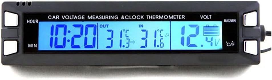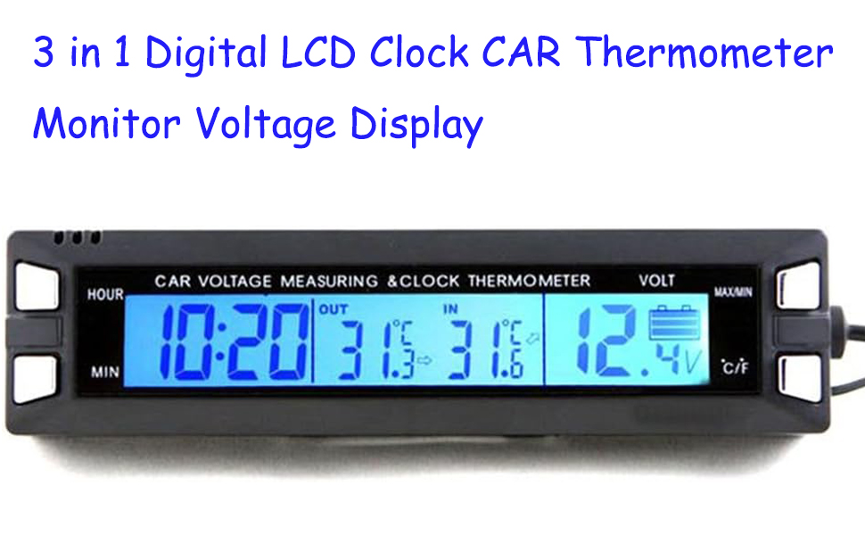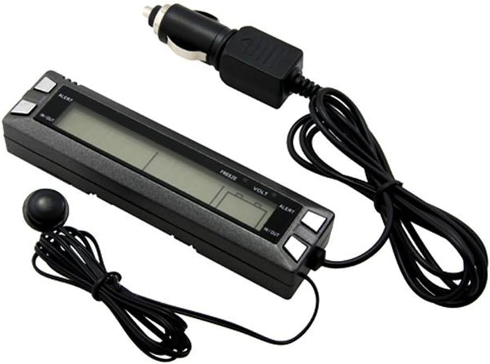 يتم وضع قابس ولاعة السجائر في السيارة ومسبار خارجي داخل باب السيارة الثابت والمفتوح، وتظهر الشاشة درجة الحرارة الحالية داخل السيارة (توجد علامة IN) وجهد البطارية بالداخل.