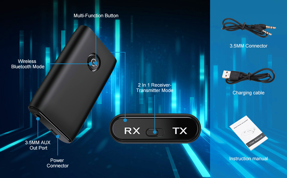 ✅【عمر بطارية فائق】يتمتع جهاز استقبال إرسال البلوتوث 5.0 هذا بعمر بطارية طويل جدًا، وبطارية مدمجة بقوة 250 مللي أمبير في الساعة، ويمكن أن تدوم 6 ساعات من الاستخدام، ووضع الاستعداد 60 يومًا، باستخدام شحن منفذ USB، مشحون بالكامل خلال ساعتين فقط، ويمكن استخدامه أثناء الشحن، والاستخدام المرن.