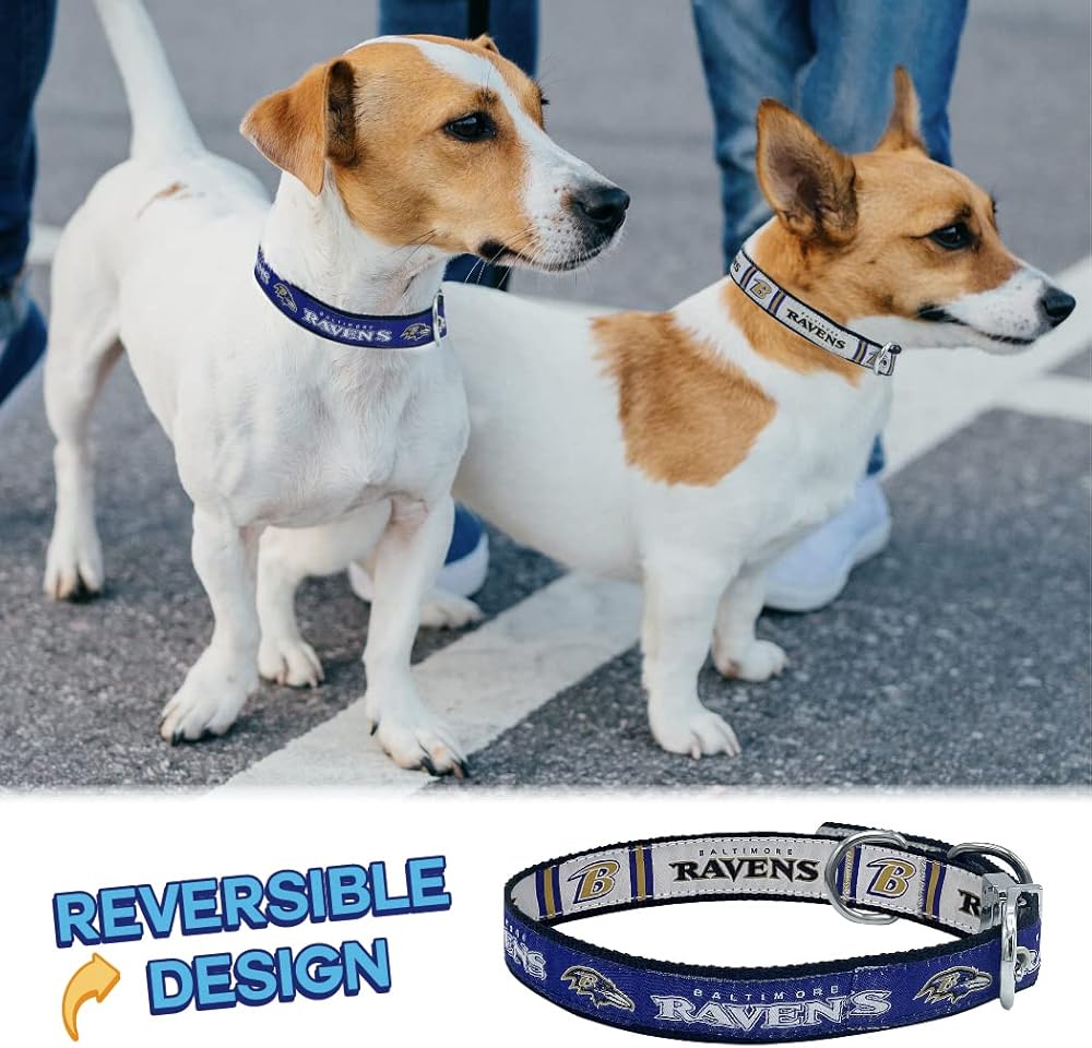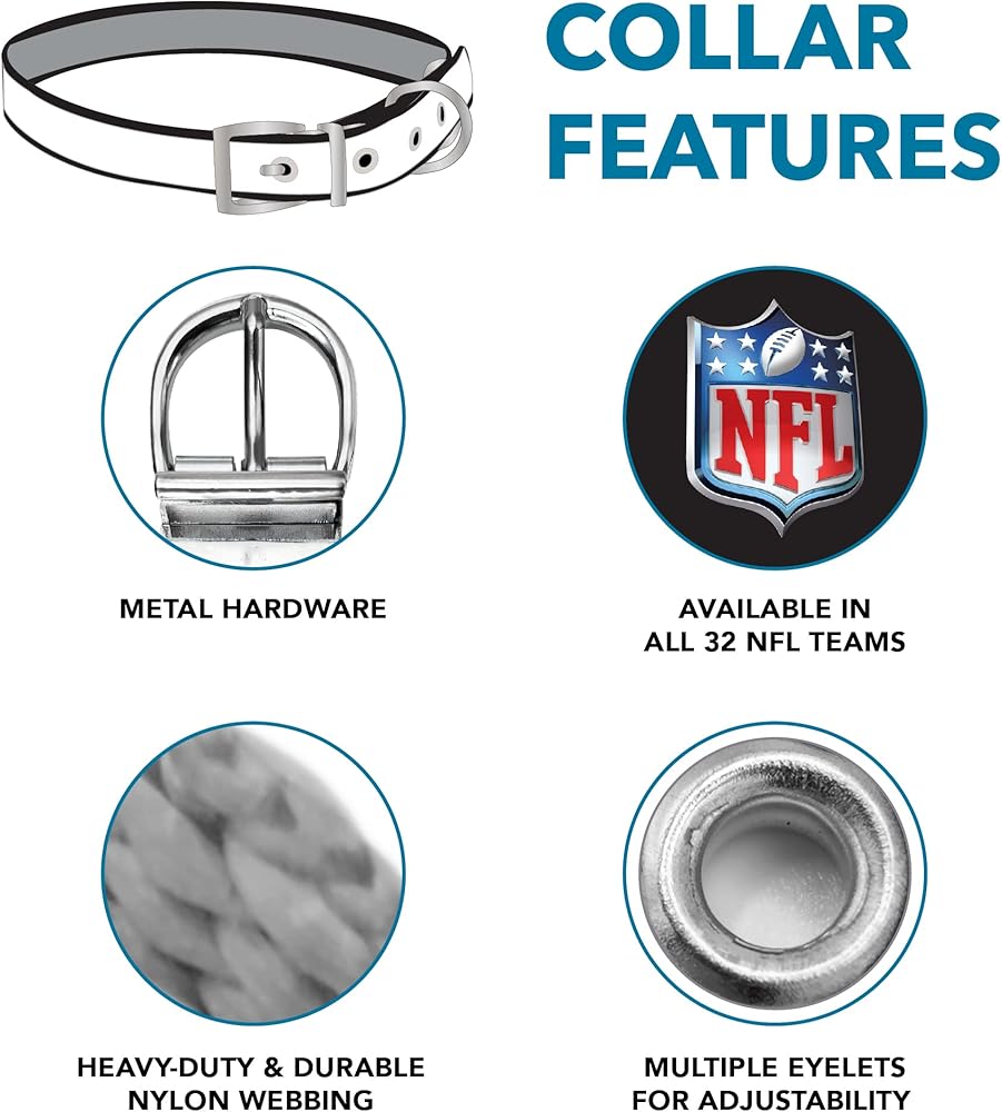 THE WHOLE NEW REVERSIBLE DOG COLLAR LICENSED BY THE NFL! At Pets First we strive to provide only the best. Were presenting you with a TOP QUALITY DOG COLLAR CAT COLLAR for Pets: Whether you are taking your furry friend on a walk or just want to show-off how cute he/she is, PETS FIRST got you covered! This awesome SPORTY COLLAR is a cool way to include your pet during game day. Your pet will look adorable while showing support for your favorite NFL team. REVERSIBLE: With the reversible feature, your pet gets TWO game day looks for the price of one! ADJUSTABLE: With multiple holes throughout the collar, you are sure to find the perfect neck size of your dog or cat. Designed to fit your pet;s neck with maximum comfort and durability! This unique DOG COLLAR features the NAME NUMBER of your favorite football team in vibrant team colors! Our Licensed NFL COLLARS also feature a METAL D RING to attach your pet Leash or dog seat belt restraint to it! A perfect and cool Cat Collar or Dog Collar for all sports fans, or as a gift to your loved ones! Now that you have found the perfect collar for your pet, why not buy a MATCHING DOG LEASH or CAT LEASH, check out our selection of NFL PET GEAR on Amazon; from NFL Jerseys, NFL Dog Toys to NFL Accessories! Choose your size and your favorite NFL FOOTBALL TEAM, and Add to Cart Now as your Four-legged fan isnt able to purchase on Amazon but is waiting on you to place the order!! TEAMS: This PET COLLAR comes in most NFL TEAMS: Arizona Cardinals, Atlanta Falcons, Baltimore Ravens, Buffalo Bills, Carolina Panthers, Chicago Bears, Cincinnati Bengals, Cleveland Browns, Dallas Cowboys, Denver Broncos, Detroit Lions, Green Bay Packers, Houston Texans, Indianapolis Colts, Jacksonville Jaguars, Kansas City Chiefs, Los Angeles Chargers, Los Angeles Rams, Miami Dolphins, Minnesota Vikings, New England Patriots, New Orleans Saints, New York Giants, New York Jets, LA Raiders, Philadelphia Eagles, Pittsburgh Steelers, San Francisco 49ers, Seattle Seahawks, Tampa Bay Buccaneers, Tennessee Titans and Washington Football Team. Need more PET GEAR? Love to match? While you buy the best; coolest sports collar for your pet, why not buy our matching PETS FIRST NFL PET GEAR? Checkout our Pets First NFL Licensed pet gear on Amazon: Pets First NFL LEASHES Pets First NFL JERSEYS Pets First NFL DOG TOYS Pets First NFL COLLARS Pets First NFL TEE SHIRTS Pets First NFL BANDANAS Pets First NFL Cat Scratchers Pets First NFL Pet Beds Pets First NFL Pet Pillows Pets First NFL Pet Car Seat Covers Pets First NFL Cat Collars. Buy the whole NFL Pet Collection; you are sure to be READY for ANOTHER GREAT WIN!! Choose your favorite sports team and ADD TO CART Now before we run out of stock again!! Licenses: Pets First has secured licenses with Major League Baseball (MLB), Major League Baseball Players Association (MLBPA), National Football Association (NFL), National Football Players Association (NFLPA), National Hockey League (NHL), National Basketball Association (NBA), REALTREE, LAUR DIY, JOHN DEERE over 50 of the top colleges in the country (NCAA). NEW PRODUCTS: Specialized in Training Pads too: As our customers relationship continues to flourish, weve introduced the BEST TRAINING PEE WEE DOG PADS on the market! Checkout the Pets First Premium Training Pads. NEW: Now adding more essential pet gear such as the Pets First Dog Brush, Pets First Dog Scissors, Pets First Dog Comb, Pets First Dog Wipes, Pets First Dog Water Bottle, Pets First Dog Nail Grinder; Pets First Dog Nail Clipper, Pets First Cat Litter Scooper, Pets First Cat Brush, etc. When you are a Pet Owner, you are part of the Pets First family! At Pets First well always have you covered!