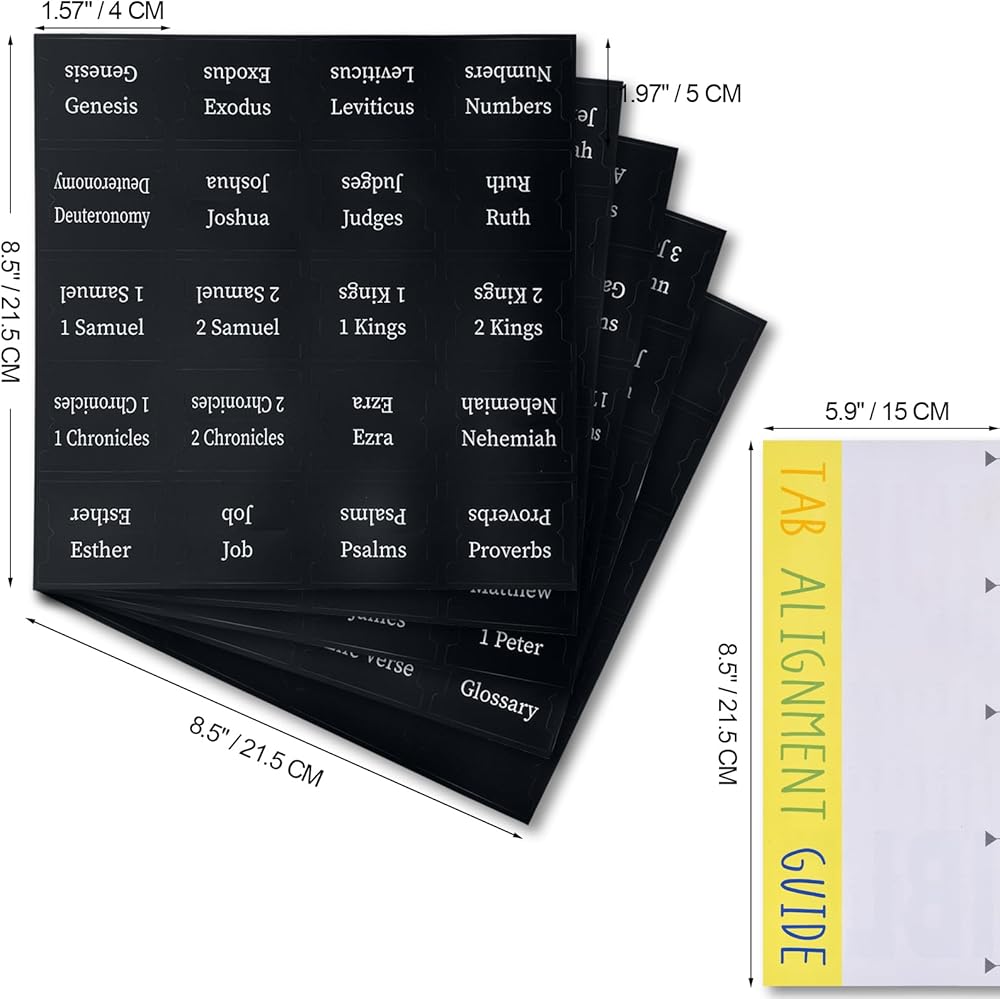 سهلة التركيب والإزالة: عروات الكتب ذاتية اللصق سهلة التقشير واللصق. يمكنك محاذاتها بشكل صحيح باستخدام دليل المحاذاة الذي يأتي مع العبوة. تم تسجيل كل علامة تبويب مسبقًا لسهولة الطي. إذا كنت بحاجة إلى تغيير موضعه، فيمكنك سحبه بسهولة دون تمزيق الصفحات. تعتبر قائمة كتب الكتاب المقدس الإضافية مثالية بالنسبة لك للرجوع إليها أثناء التقديم.
