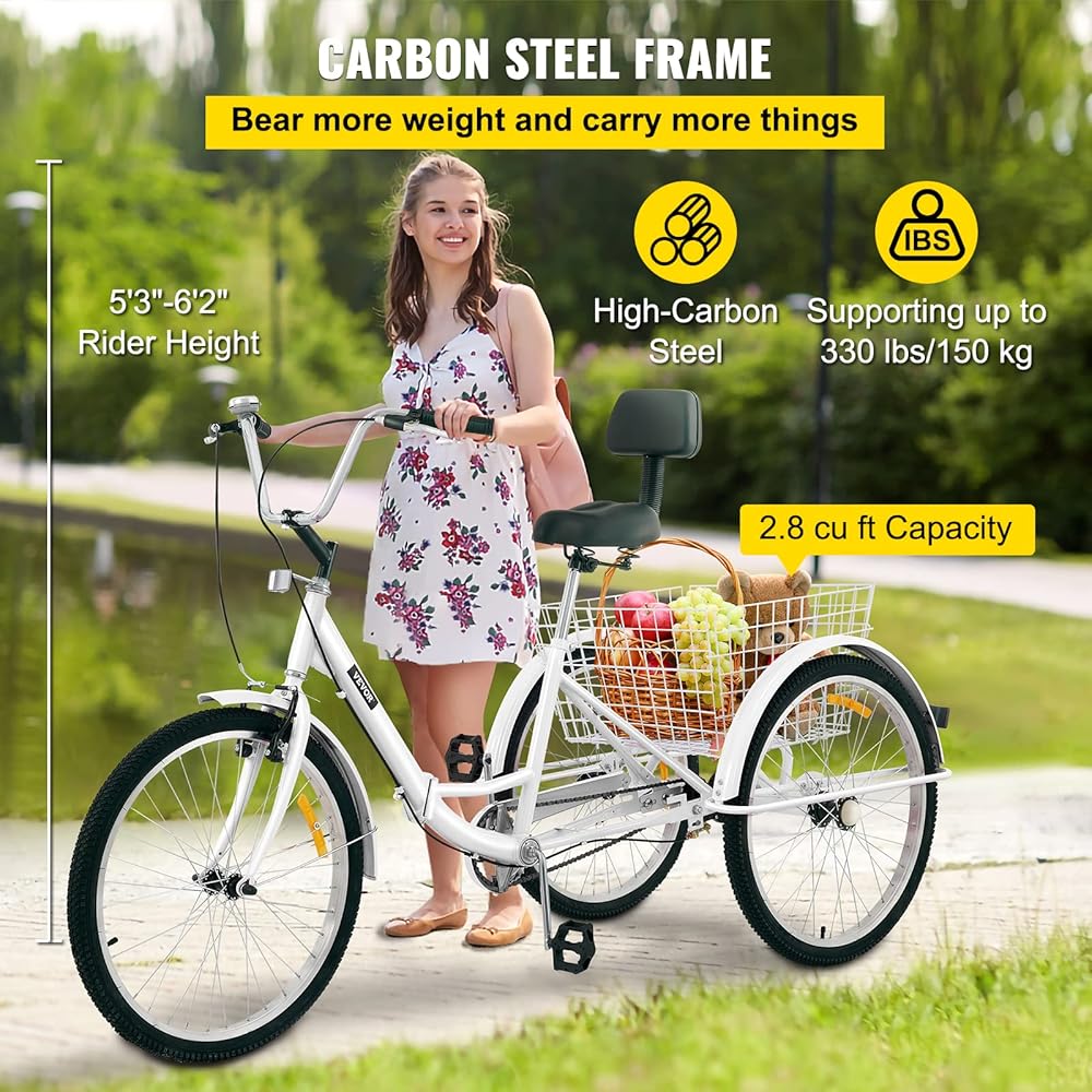 إطار فولاذي كربوني قوي: الدراجة ثلاثية العجلات القابلة للطي للبالغين مصنوعة من فولاذ عالي الكربون لتحقيق الثبات والمتانة. يدعم هذا الإطار المتين الوزن المشترك للراكب والحمولة، حتى 330 رطلاً/150 كجم. بالإضافة إلى ذلك، توفر العجلات مقاس 26 بوصة/66 سم تجربة قيادة مريحة للأشخاص الذين يتراوح طولهم بين 5 أقدام و3 بوصات/160 سم و6 أقدام و2 بوصات/188 سم.