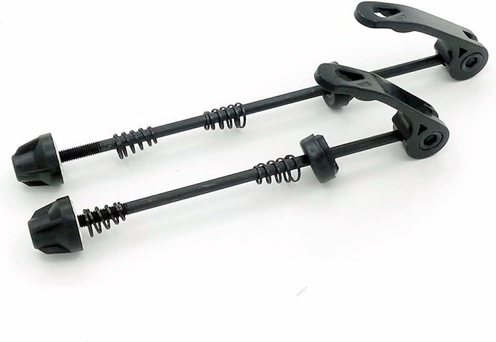 Made of high quality iron and aluminum alloy, it is durable, sturdy and high strength.-A necessary bike part for bike repair especially for MTB enthusiasts.-Suitable for most bikes with a 26 inch wheel.SpecificationsMaterial: iron + aluminum alloypackage1 x front wheel skewers1 x rear wheel skewers