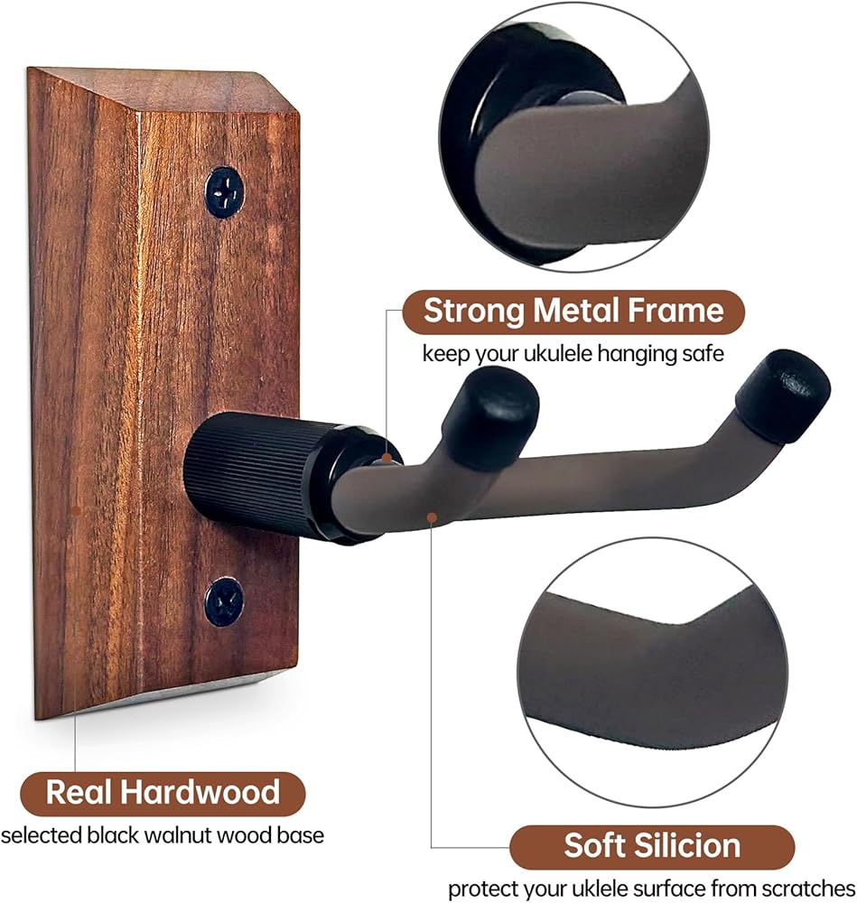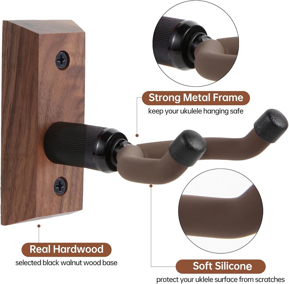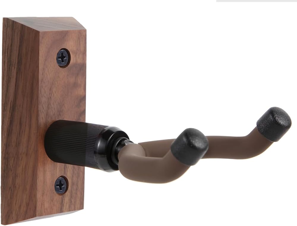 ✔ شماعات القيثارة من الجوز الأسود الفاخر: قاعدة الشماعة المثبتة على الحائط من القيثارة مصنوعة من خشب الجوز الأسود الصلب عالي الجودة. مستقرة ومتينة، وأكثر أمانًا لتعليق القيثارة الثمينة على خطافات التثبيت على الحائط