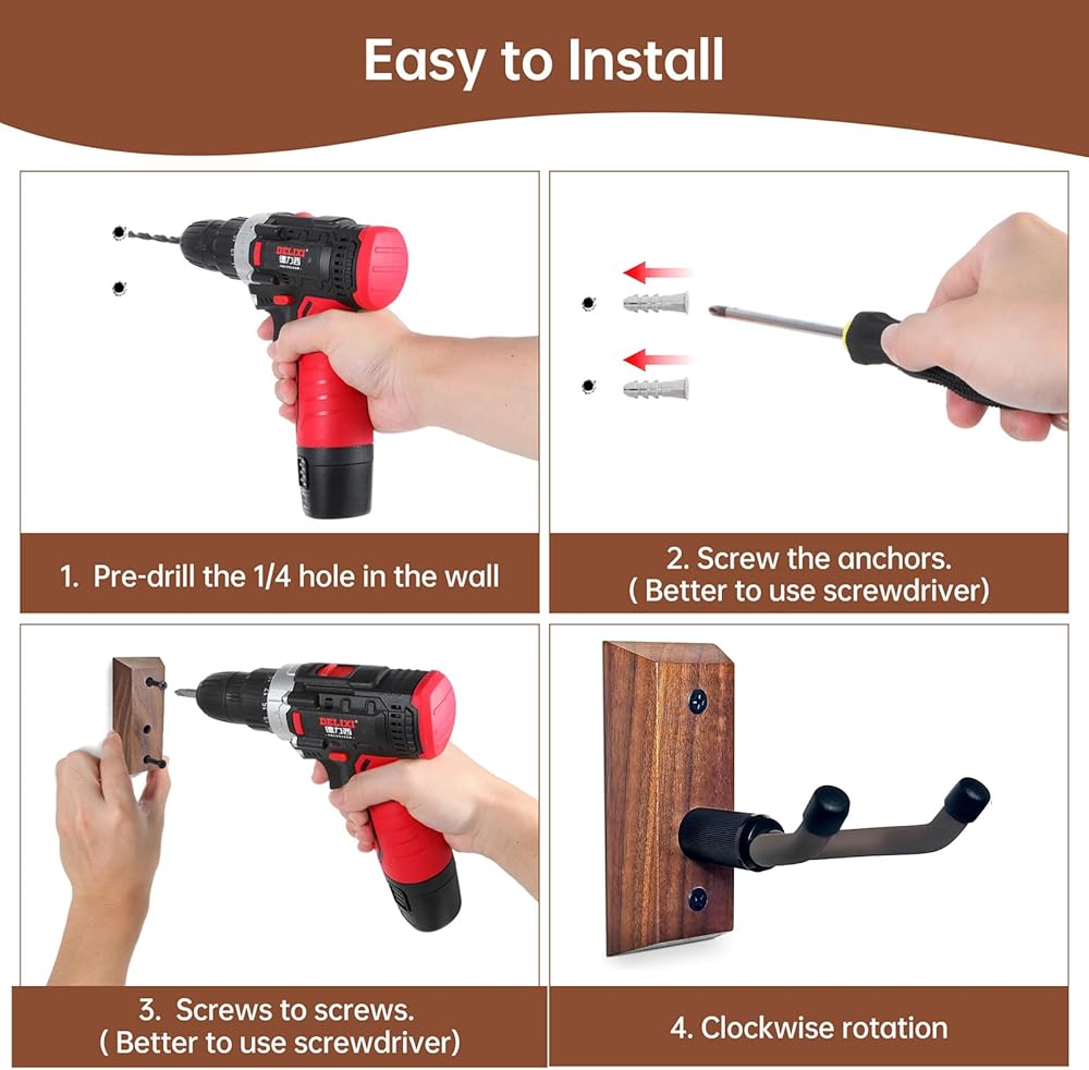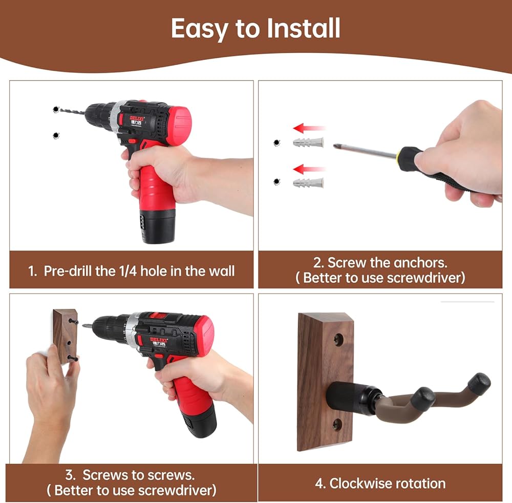 ✔سهل التركيب: تركيب سريع وسهل باستخدام مفك البراغي فقط. تحتوي العبوة على 1 شماعة قيثارة مع براغي وأدوات تثبيت للتركيب بشكل آمن على أنواع الجدران المختلفة.