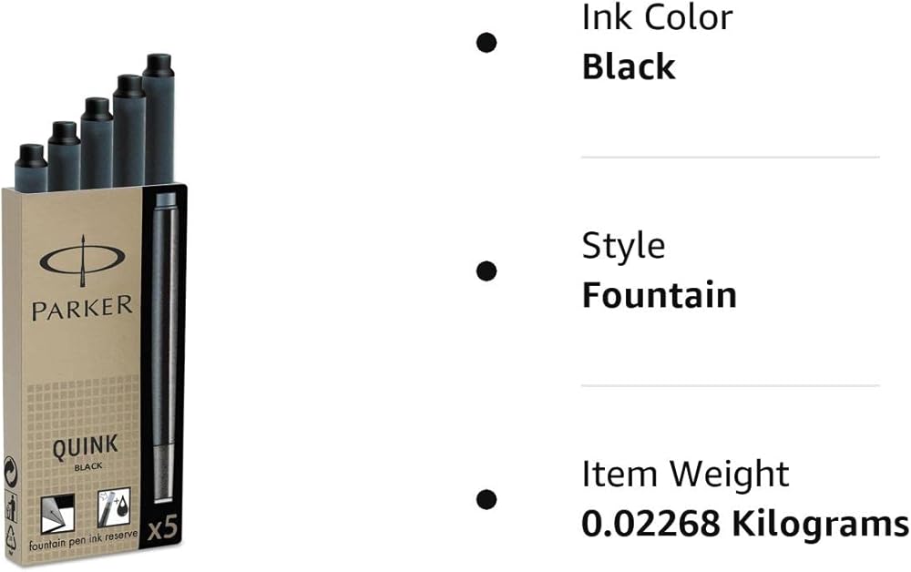 The Parker Quink is a high-quality and smooth flowing ink that has been used for almost a century. Quink ink was developed in the early 1900's as a revolutionary ink that eliminated the need for blotting. These days the majority of fountain pen inks available feature smooth flow and quick drying times, but the Parker Quink still remains as a classic favorite.