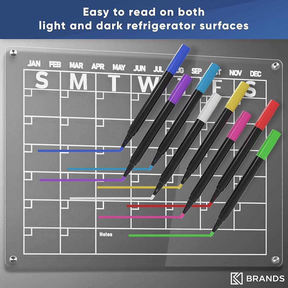 🌈 8 أقلام تحديد ساطعة (ألوان لأي ثلاجة): استمتع بقوس قزح من خيارات أقلام التحديد سهلة التنظيف والتي تم اختيارها بعناية لتبرز على أسطح الثلاجة الداكنة والفاتحة.