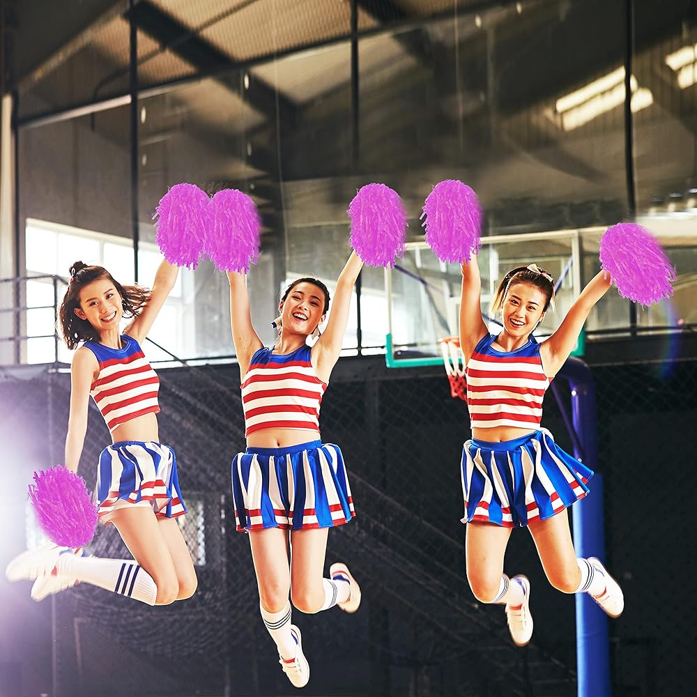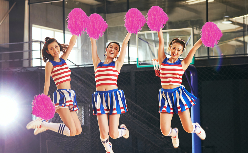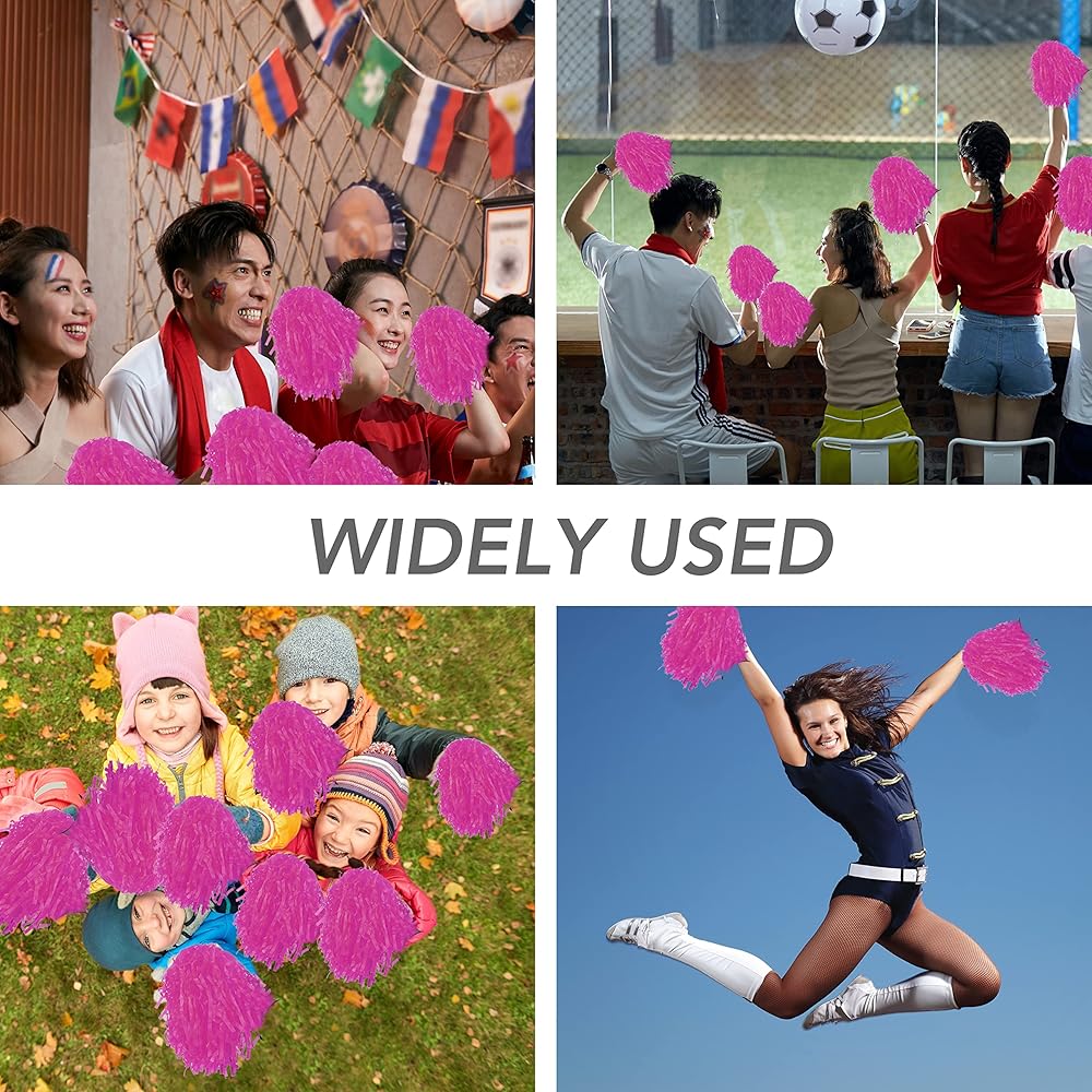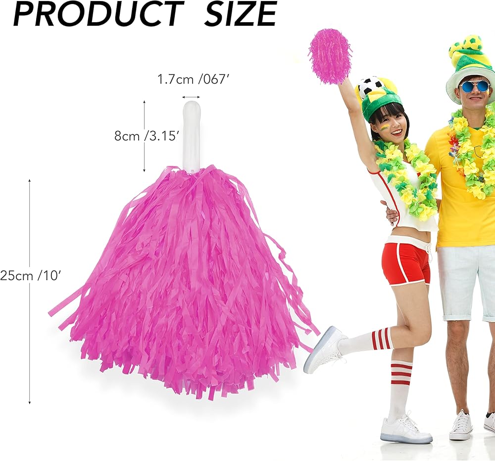 High quality materials: these pink pom pom cheerleaders are made of high quality PE materials and equipped with white hard plastic handles; They are durable and reusable, light in weight and high in quality.