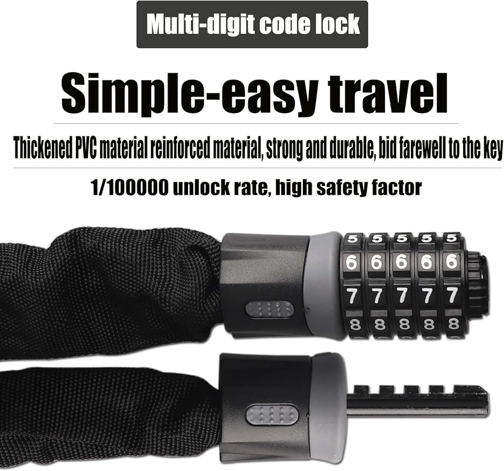 🚵[مجموعة واسعة من التطبيقات]: يبلغ سمك قفل الدراجة المركب هذا 0.25 بوصة، وهو مثالي للدراجات والدراجات والسلالم وجزازات العشب والبوابات والأسوار وصناديق الأدوات والشواء والمعدات الرياضية وما إلى ذلك.