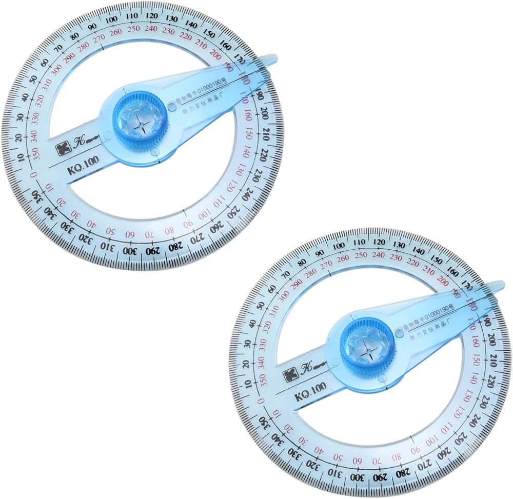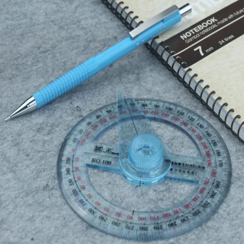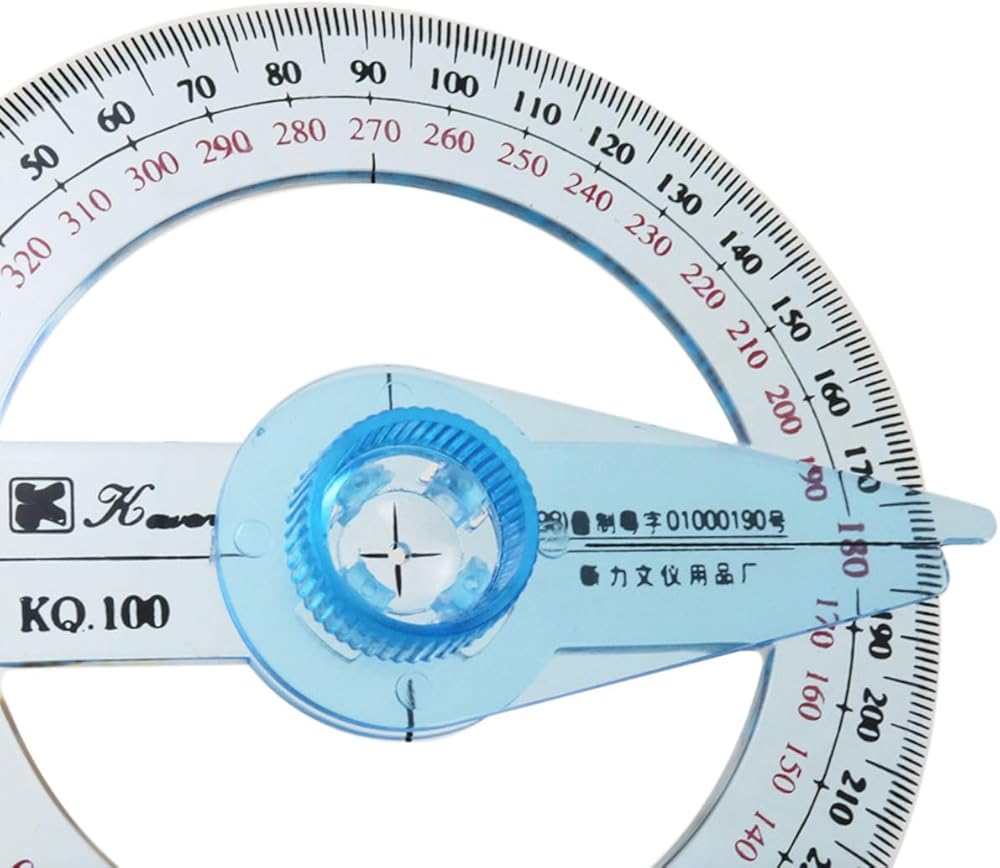 Features: Full circle protractor with swing arm has a comprehensive measurement range, ranging from 0 to 360 degrees,and the scale is bright and clear, and the words, letters, numbers, etc. on the page can be seen through the protractor, which is an excellent mathematical tool for school office applications.