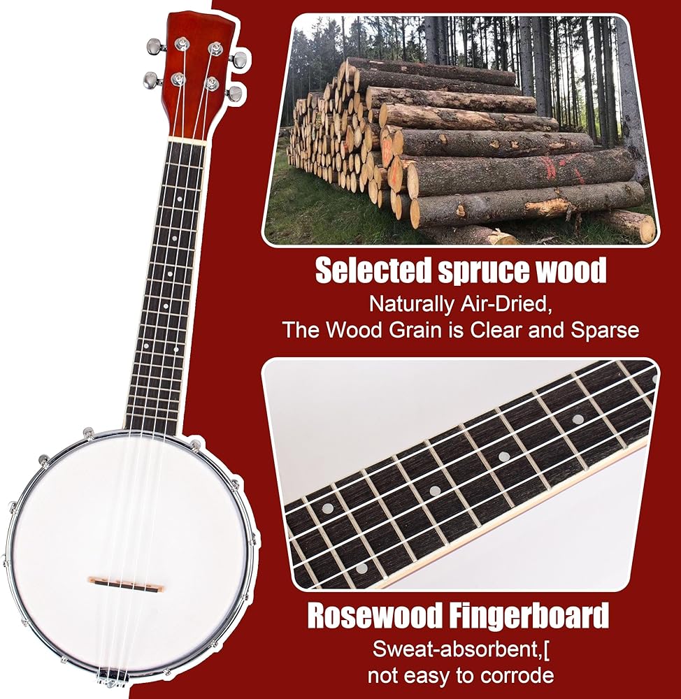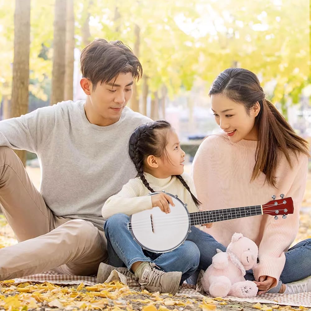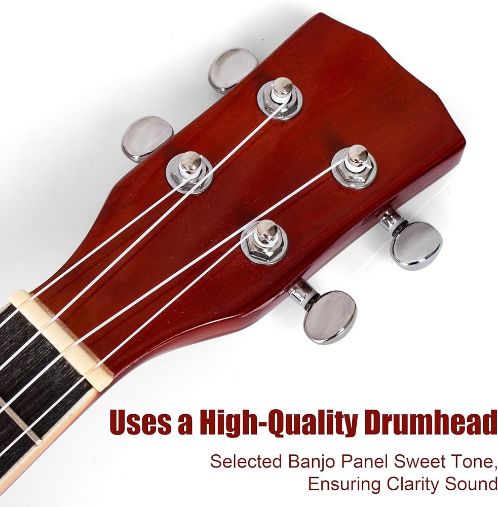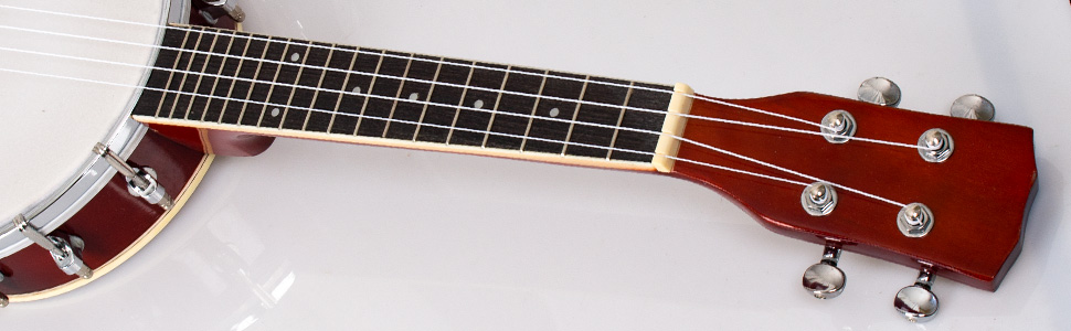 【غراب رأس مصقول يدويًا】منحوت ومصقول بدقة، يتميز هذا البانجو المكون من 4 أوتار بغراب رأس ورقبة على شكل الجيتار للحصول على صوت ممتع.
