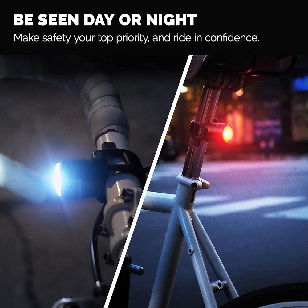 تركيب سهل في ثوانٍ - لا يتطلب أدوات. يوفر المصباح الأمامي للدراجة وأشرطة التثبيت المصنوعة من السيليكون للإضاءة الخلفية قبضة سهلة وثابتة، ومضمونة لتناسب جميع الدراجات.